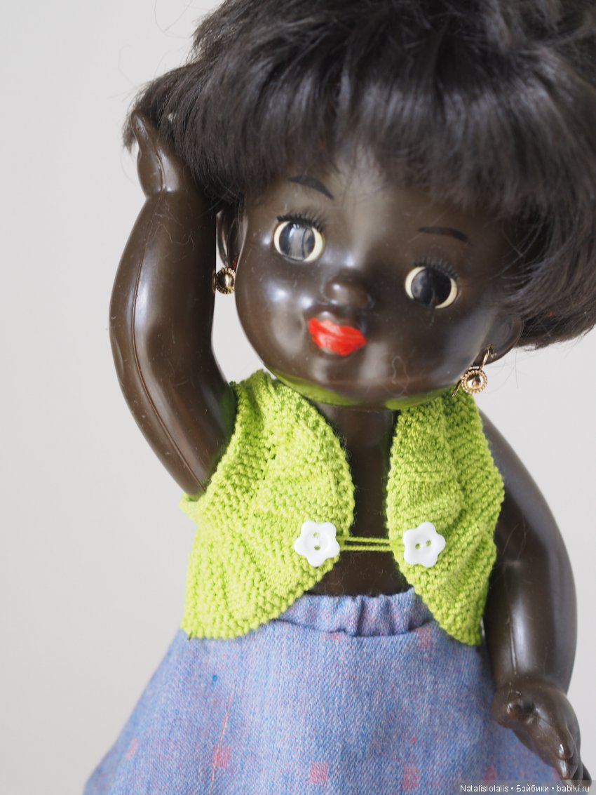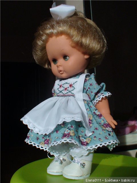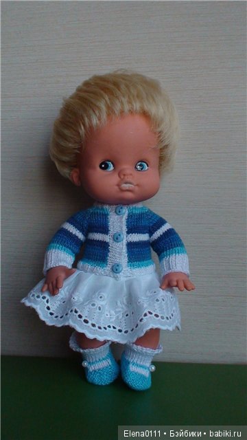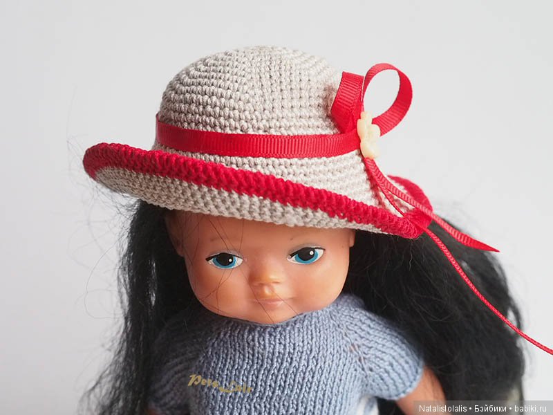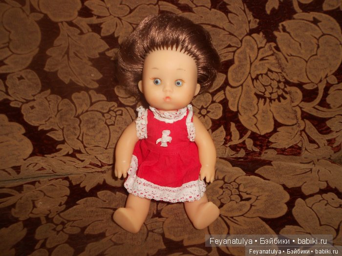Продавалась она с кроваткой, кружевным конвертом и шапочкой. Помню свой восторг, когда впервые ее увидела:) Сохранилась только шапочка. Не помню точно ее фабричное имя, но кажется, что это Краснодарская Анютка. Если ошибаюсь, пожалуйста, поправьте.