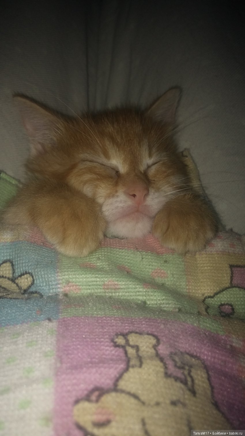 Хочу рассказать историю. Мой Персик прожил 2 месяца и 8 дней. Я его вскармливала с самого первого дня с пипетки.Ночами приходилось не спать, вставать каждые 3-4 часа, кормить и менять воду в грелке. Прикипела всей душой к этому ребенку. Он был котиком проблемным: начальная стадия гидроцефалии, вылечили без последствий; вывих задней лапки, тоже лечили; постоянные проблемы с глазами( конъюктивит). Последние 3 недели я с ним проблем совсем не знала, все шло как и нужно, активно набирал в весе, был ужасно активным и непоседливым, привык без проблем к лотку, не хулиганил.Он был очень ласковым и любвеобильным. Его полюбила вся семья, мы уже даже ходить научились, не отрывая ноги от пола, чтоб не навредить. Спал он исключительно у меня на подушке и сопел в ушко. Критический период, казалось бы, пережит… Но одна роковая случайность забрала моего котенка. Бабушка наступила на лежащего Персика, перелом ребер, пробитые легкие. Он стал задыхаться даже не кричал, глаза бегали, зрачки расширились. Я моментально закутала его в простынь и побежала в ветеринарку, в течении 2 минут я пробежала расстояние в 3 км, сама дышала через раз, лишь бы успеть… У ребенка ртом пошла белая пена. Забегаю в кабинет… Врач вяло раскрывает простынь, ощупывает, вколола 4 укола для раскрытия легких, он стал кричать от боли. От шока я не могла ни вдохнуть ни выдохнуть, как и он… В то время как врач договаривался о предстоящей кастрации, мой ребенок лежал и мучился от боли, шока и непонимания. Я поняла, что ему деньги нынче важнее. Ртом пошла кровь, я уже не могла на это смотреть… Меня спросили, будем делать эвтаназию? Я ответила да… До сих пор себя виню, почему я не настояла на операции!? Его отнесли в операционную и я услышала последний крик Персика от иглы в сердце.Слезы, слезы, слезы… Вынесли пакет с моим малышом. Сейчас он лежит в сырой земле… До сих пор тошно и больно от всего… Я не понимаю, никогда животное не вызывало таких эмоций… Он впал в душу прочно и надолго… Не могу избавиться от чувства вины… Я не знаю, что делать… Персик, мы все тебя любим и помним твои глаза, полные любви…