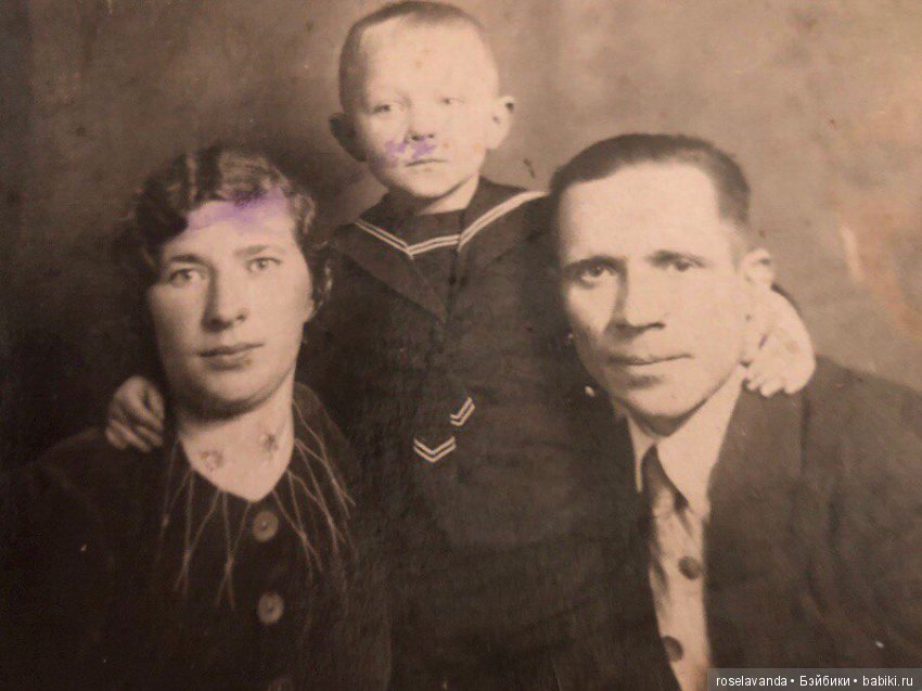 Здесь они же со старшим сыном.Время послевоенное, дедушка дошел до Берлина и придя домой попросил бабушку сделать стрижку как у западных девушек… Бабушка перый и последний раз ))остригла косу...