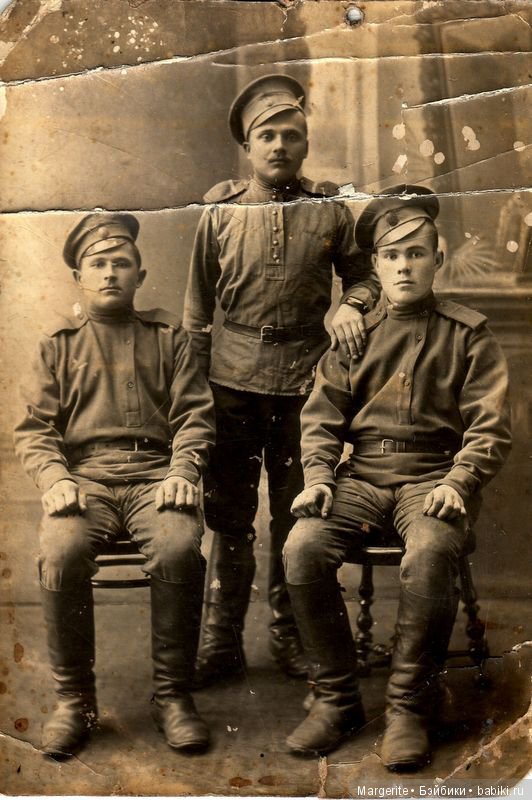 А это единственная фотография второго моего прадедушки по маме (сидит справа). Он погиб на гражданской войне в год рождения своей дочери — моей бабушки (1918).