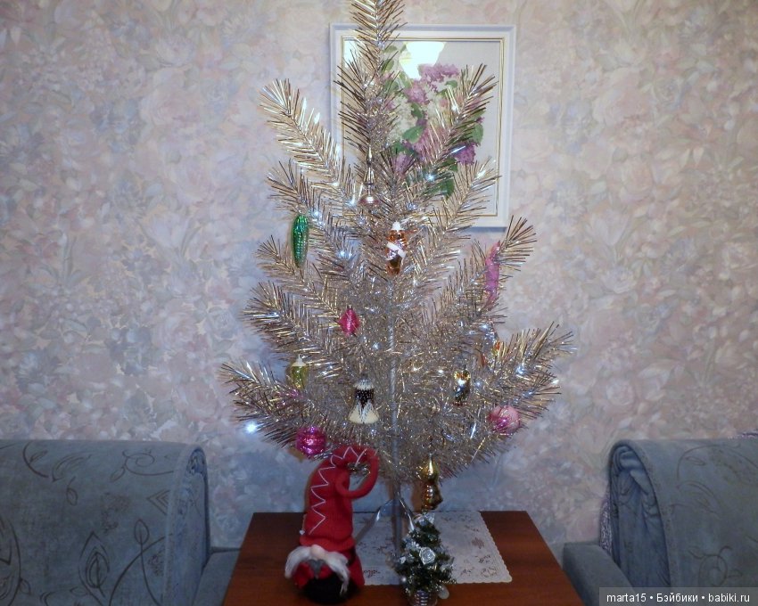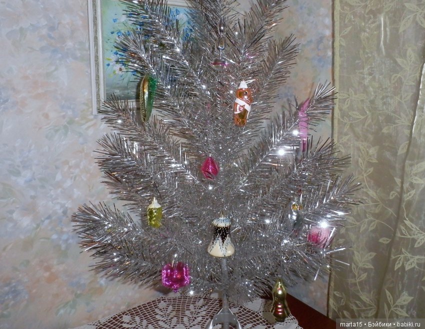 У меня тоже сохранилась такая ёлочка и немного игрушек из детства.