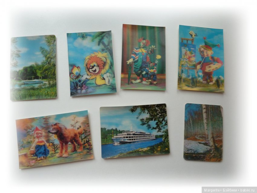 Очень любила так называемые стерео-календарики, они мягкие. Такие еще открытки были. На скане получаются не особо четко.