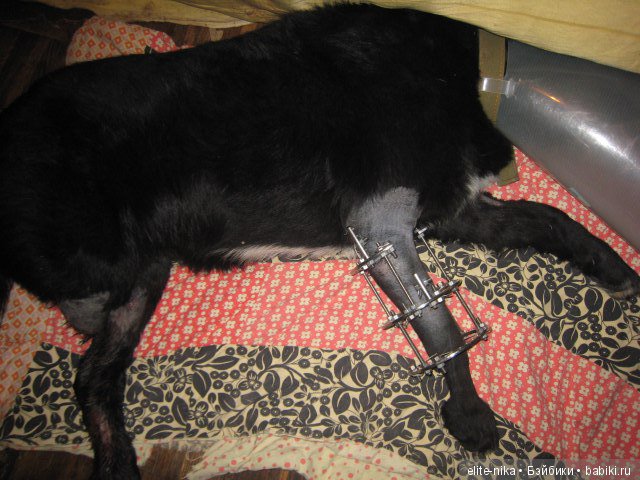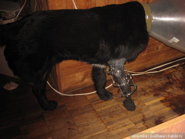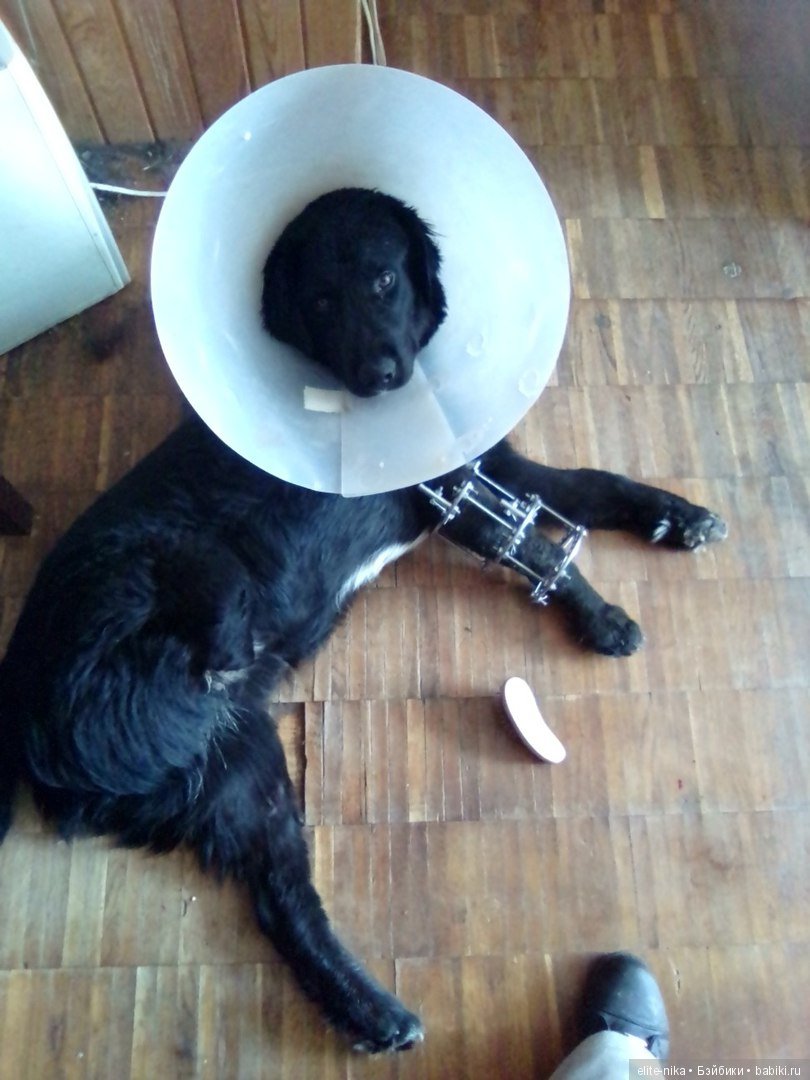 Сказали аппарат ещё будет стоять у него. По -моему он привык к нему. Сделали ему на лапу ампутированную валенок, ток он за день его сгрыз на половину)
