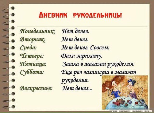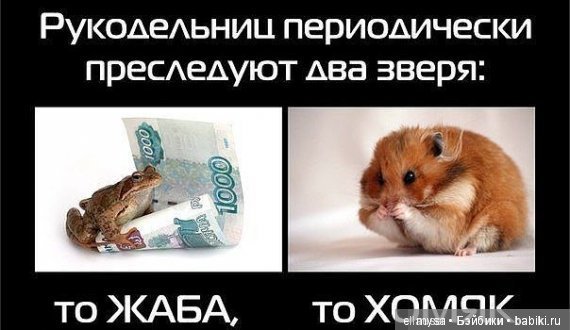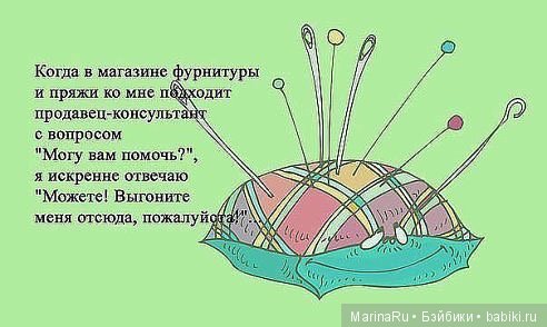 И хотя я не вяжу (от слова совсем) на многих картинках себя узнала! Подставьте вместо слова пряжа тряпочки-пуговки-кружавчики а там где от грабителя женщина святое грудью закрывает, за спиной кукол увидела!