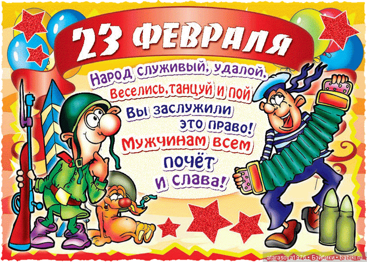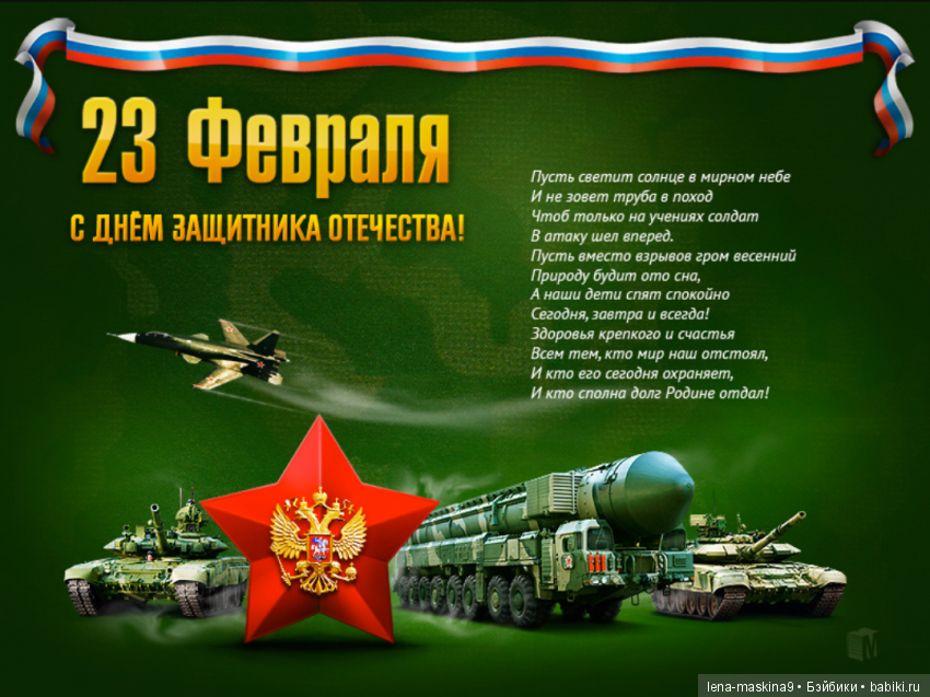 Дорогие наши мужчины — Бэйбиковцы! Поздравляем Вас с Днем защитника Отечества! Пусть в вашей жизни всегда будет надежный тыл, любовь близких, крепкое здоровье! Желаем вам благородных поступков, великих целей и их достижений, мира и счастья вам!!!