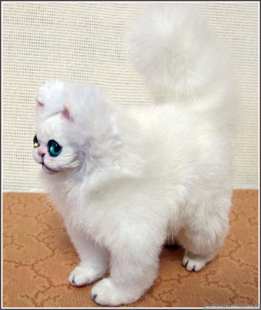 На прошлой выставке в Гостином Дворе поставила я себе задачу- купить котика, маленького, но реально вида. Не тут-то было! Сто кругов намотала, но такого котика не нашла. Все в одёжках, какие-то стилизованные. Я даже отчаялась найти, хотя была уверена, что на выставке этого должно быть много. Всё- таки я нашла, но мне пришлось его чуть подделать, а, то вид был не натуральный. Меха я прибавила над ушками. Вот, что получилось.