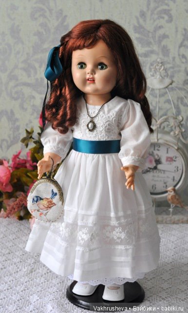 Дело было так… блуждала я на просторах сайтов продажа/покупка и вроде покупать ничего не хотела и вижу фото, сидит кукла грустная, зашла в объявление, фото не стало четче, но по ресничкам понятно немочка. И решила возьму, спасу ребенка. Пока она ехала, я для неё ткань покупала, наряды рисовала. Вот долгожданная встреча. Куклена была конечно не в лучшей форме, глаза вообще меня повергли шок они были мутные. Но оказалось не всё так критично. Искупались, оттерлись, глазки оказались карии и красивые))) Я её с собой возила, то домой, то к родителям, назвала — Изабелла, уж очень мне аристократическое лицо мне у неё показалось. Познакомила со своими куклами, среди них одна немочка, остальные СССР из детства, приезжих у нас отродясь не было)) Но как-то не заладилось у неё в куклосемействе. Потом было не до кукол… Прошло время, поняла, что немочки не моё. Решила продать, но если в течении определенного срока не продам, то оставлю. Но покупатель нашелся быстро...( иу нас на сайте). Скрепя сердцем, собрала малышку в дорогу… обняла на прощанье. Прости меня кукла… не оправдала я твоих надежд. Надеюсь в новом доме тебе живется хорошо.