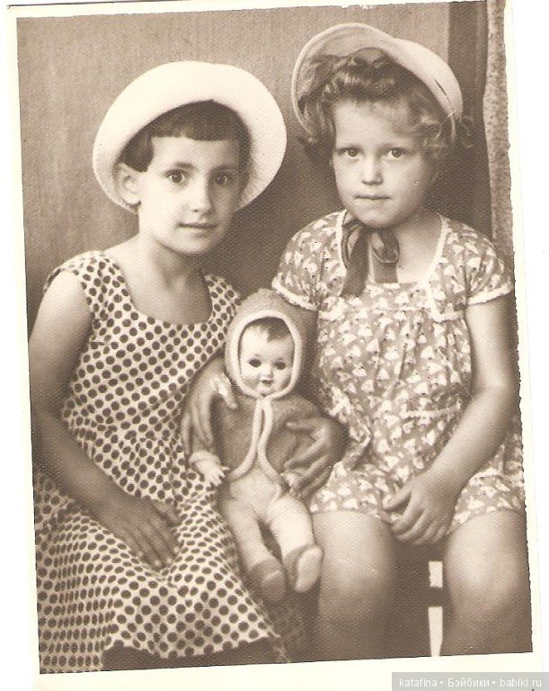 Где-то в году 1963 или 1964 мы были с мамой в г. Краснодаре (столица Кубани) и после всех дел, по каким, собственно, мама туда и ездила, мы зашли в магазин «Детский Мир». Мамочка хотела что-то купить мне из одежды и обуви, так как в нашем маленьком провинциальном городке было плохое обеспечение и всё нужно было доставать. И пока она выбирала вещи, я (мне было лет 4,5 или 5), я подошла к полке с игрушками и увидела их… Это были два пупса, ростом, примерно, (как я теперь могу приблизительно предположить) 45-50 см. Одеты они были в белые махровые комбинезончики и в курточки с капюшончиками, тоже махровенькие или флисовые (они были очень мягкие на ощупь, помню, как будто это было вчера). На одном пупсе была розовая курточка, на другом салатовая. На ножках были пинеточки из такого же материала, как курточки. Мне понравился пупс в салатовом, хотя они были абсолютно одинаковые. От них нельзя было оторвать глаз, такие у них были красивые личики: глазки (вот не помню- то ли зелёные, то ли серо-синие) с мягкими длинными чёрными ресничками, закрывающиеся, ротик полуоткрыт в улыбке и видны были два нижних белых зубика и розовый язычок. Я в свои неполные 5 лет таких кукол ещё никогда не видела. У меня были только целлулоидные пупсы и опилковые куклы. Волосики были просто прорисованы (не рельефные), головушка гладенькая. Так вот, я не могла оторваться от полки с этими куклами. Мама меня уговаривала, что на куклу нет денег (она стоила 14 руб с копейками, по тем временам — целое состояние, мама работала рядовым бухгалтером и получала 60 руб в месяц). Но никакие уговоры на меня не действовали, я ревела как белуга, ухватилась за прилавок и меня невозможно было от него оторвать. Маму стала уговаривать продавщица, что, мол, женщина, купите дочке куклу; может для ребёнка это будет психологической травмой на надолго. И… мама купила мне этого пупса. Самое интересное, что до этого случая я никогда так неистово не просила игрушек. И тут моему счастью нет было предела. Куколка была с мягконабивным тельцем, голова, ножки до колен, ручки до локтя были фарфоровые или керамические (только не колкий пластик, не опилковые и не резина, винила в то время ещё не было). Я это могу сказать с уверенностью, потому что потом, спустя некоторое время, кукла голенькая была уронена на кафельный пол и ступня у одной ножки отломилась от удара и разбилась на мелкие кусочки. Мама потом надела на ножки куклы маленькие носочки и там, где не было ступни, набила туго носочек ватой, сформировав ступню. Учитывая, что ещё были пинеточки, «инвалидности» не было видно. Я очень любила этого пупса, не расставалась с ним и ночью. Очень дорожила им. Потом младшая сестрёнка повыдёргивала ему реснички — я очень переживала, что он стал без ресниц, но потом привыкла и к такому, всё равно он был очень красивый. Но, однажды, сестра ковыряла пальцем в глазках пупса и выдавила их вовнутрь головы. Опять мама сделала ему «операцию» — устройство починить не смогла, просто намертво приклеила глазки изнутри к глазницам. И такой пупс мне был мил — я его обожала. В таком виде он сохранился до моего поступления в институт в 1977 году. И вот когда я через год приехала на каникулы — пупса уже не было, его мама кому отдала (соседским детям). Мне было его очень жалко.