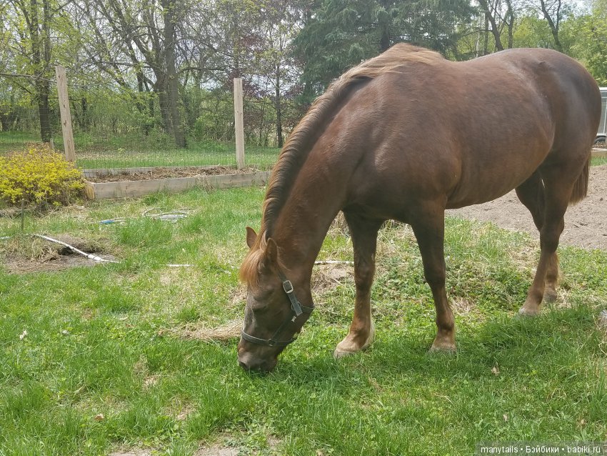Вот взяла ее с собой в огород, картошку с помидорами надо сажать и она рядышком травку щиплет :)