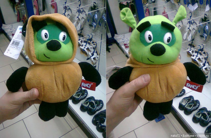 Эта милая игрушка при нажатии на голову пришуривается и скалит зубки.