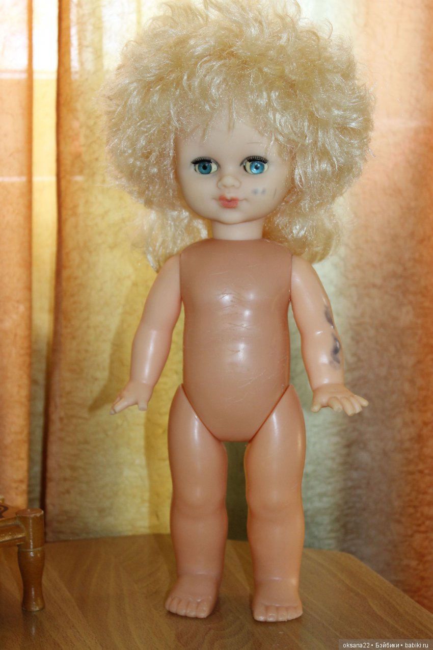 Всем доброго дня! Недавно у родителей нашла свою старую куклу, даже не знаю как ее зовут и чья это кукла. Рост примерно 35-36 см, голова и руки резина, остальное пластик. К сожалению, от времени тельце ее стало крошиться, хотелось бы найти донора, т.к. ремонту не подлежит, для этого сначала надо ее опознать, в интернете похожих не нашла. Тело где-то 14-15 см, под голову отверстие 3 см, под ноги 3,5, собрана не на резинках. Может кто что знает. Очень хотелось бы оживить девочку.