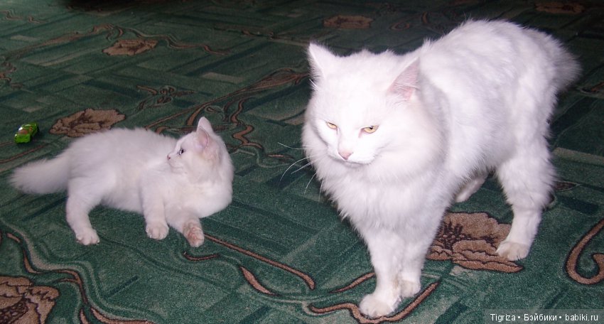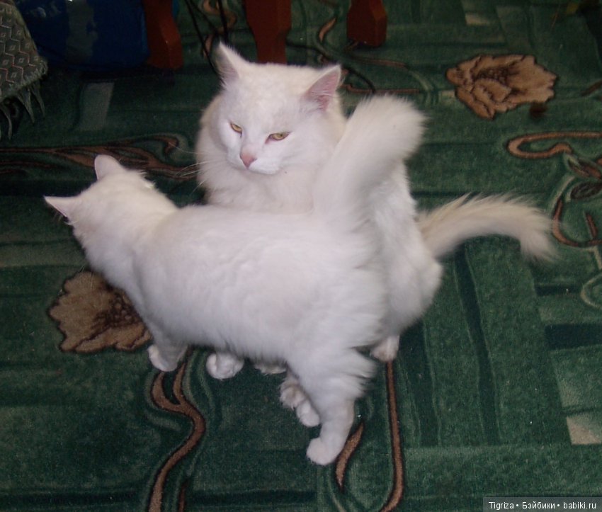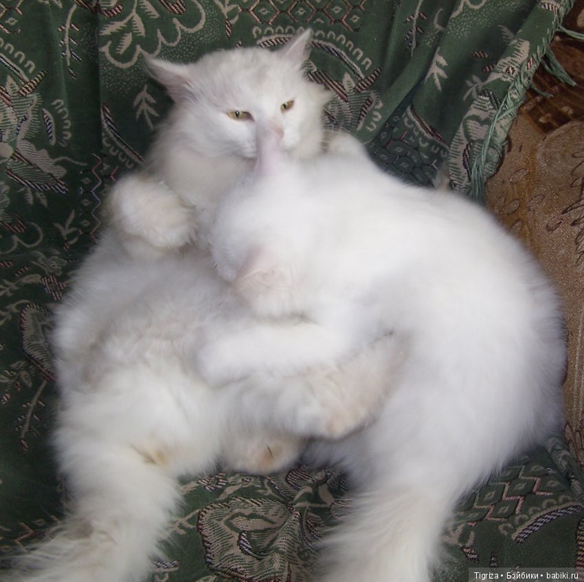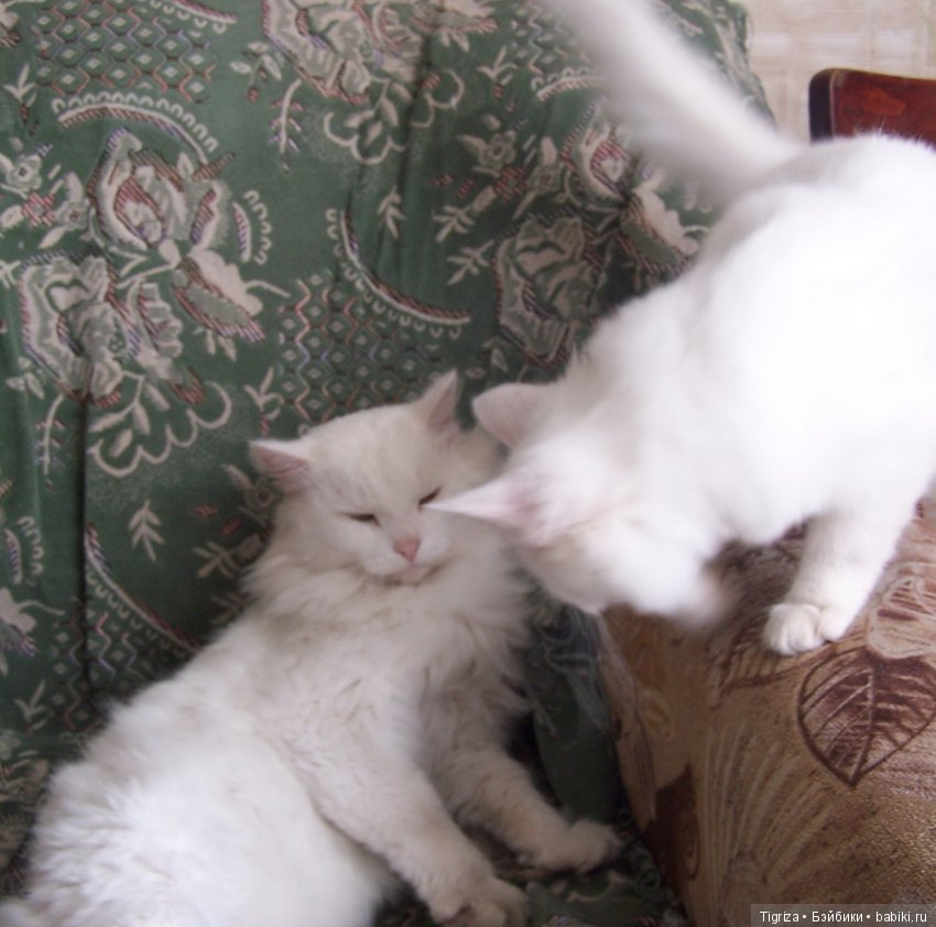 А это мои красавцы. Люблю белых котов.И по одному их никогда не держу.Морфей и Шах. Шах-молоденький котенок.А Марфуше уже 7 лет. Он отличная нянька. Хоть и терпит бесконечные атаки Шаха.