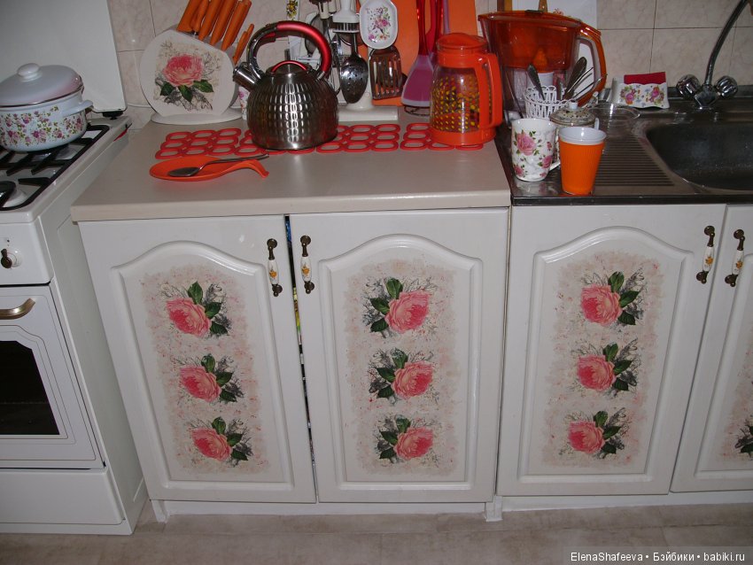 Перекрасила старые шкафы и добавила немного фантазии. Если кому то мой опыт понравится, могу поделиться и рассказать более подробно( о красках и, вообще, как я это сделала...).