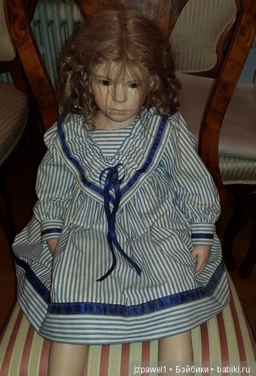 А еще кукла Женя. Это старый молд 8-Мартовской Маринки, паричковая кукла. Красавица Женя была ходячей, сидела и смотрела на меня огромными серыми глазами. Я с ней почти не играла, слишком громоздкой она была. И занимала много места. И меня уговорили выставить Женю в подъезд. Туда все соседи выставляли ненужные игрушки. Несколько дней она там сидела, я подходила к ней, что- то говорила… А потом ее кто- то забрал.
