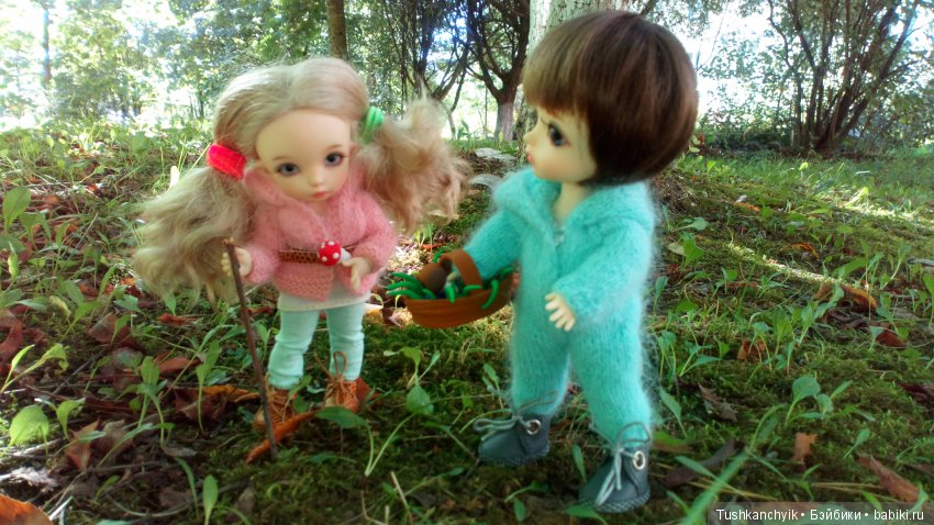 Каролинка тоже мухоморчик нашла, Марик пытается уговорить его выбросить, но всё тщетно… — «ведь он такой красивый! А ты мне просто завидуешь!» — оправдывается Каролинка)))