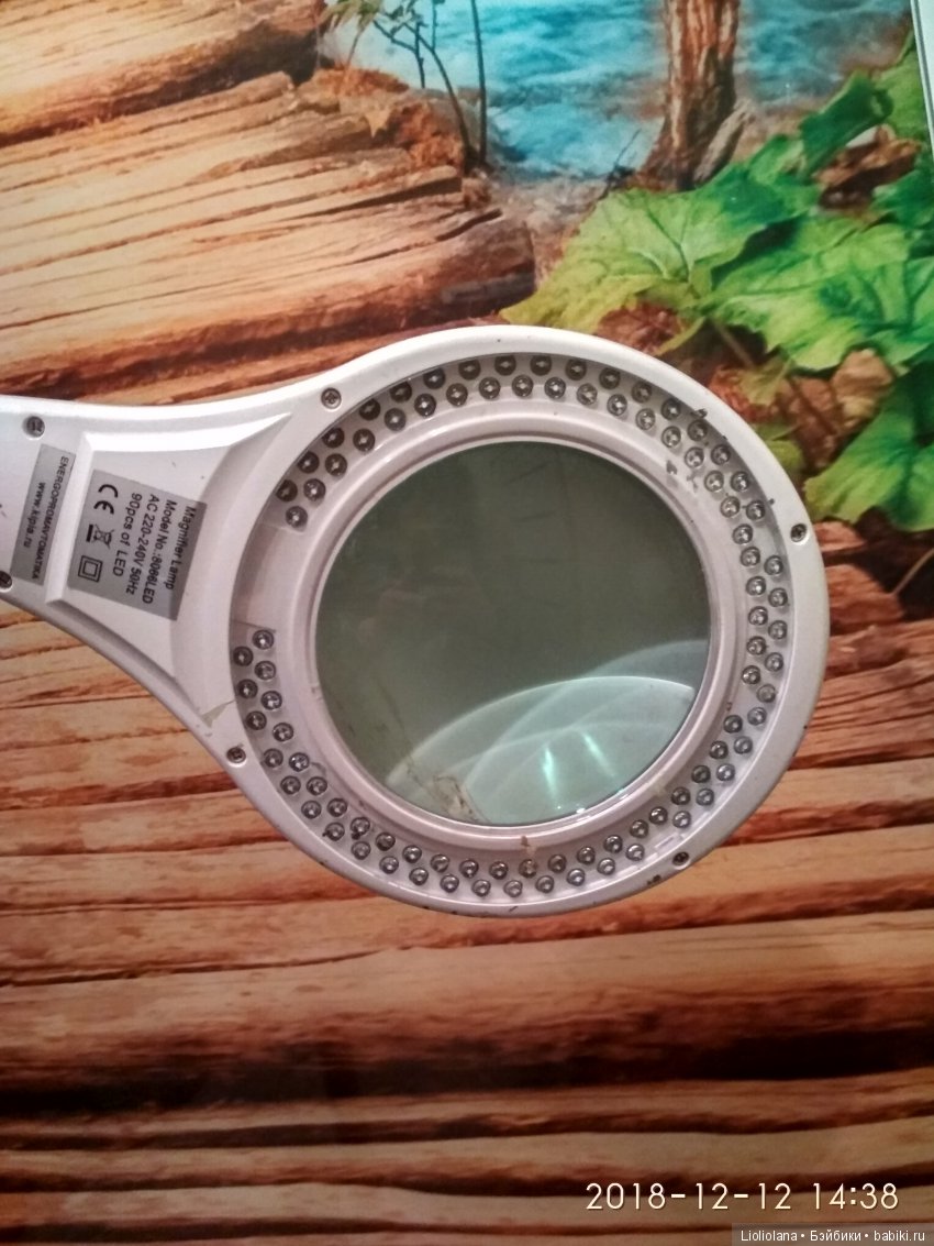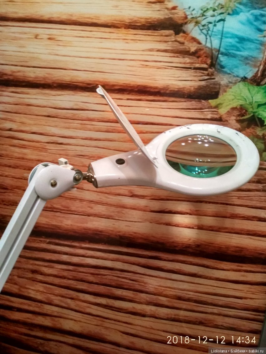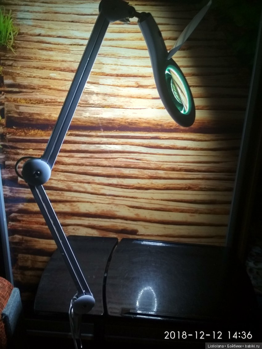 Дабы не испортить глазки я купила себе вот такую штуку. Оказалась приятно удивлена современным дизайном и продуманностью этого самого дизайна. Увесистая тяжёлая подставка надёжно держит лупу. Так же есть кронштейн (вон он на фото лежит) для крепления к столешнице. Я для себя пока не решила с каким креплением мне будет удобно работать и буду я досвечивать или хватит просто лупы. Начну работать и на месте буду решать.
