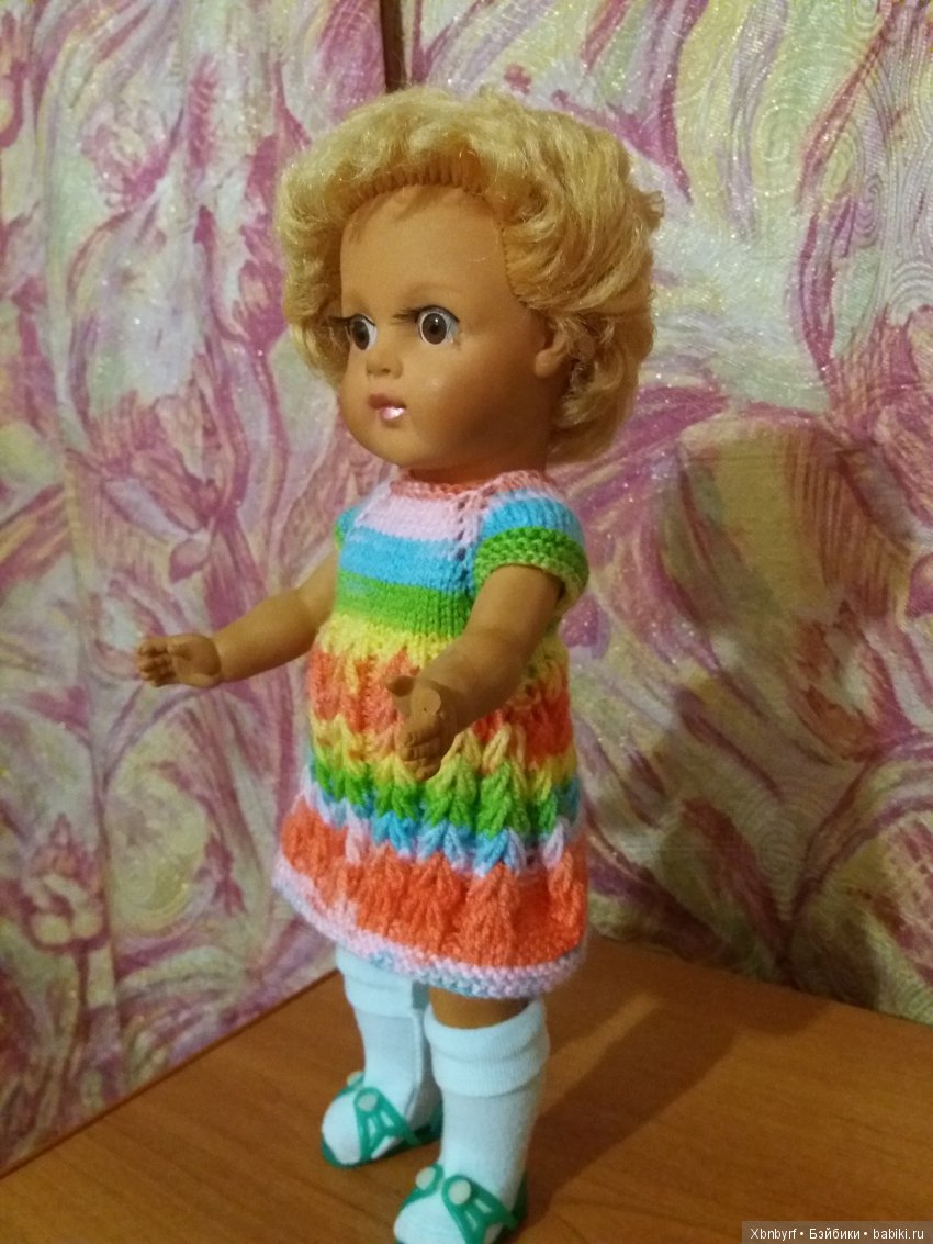 Я долго рылась в памяти и в интернете, и решила, что более всего она была похожа на кукол фабрики «Звездочка». Но в каталоге я точно такой не нашла. А, может, память поводит.