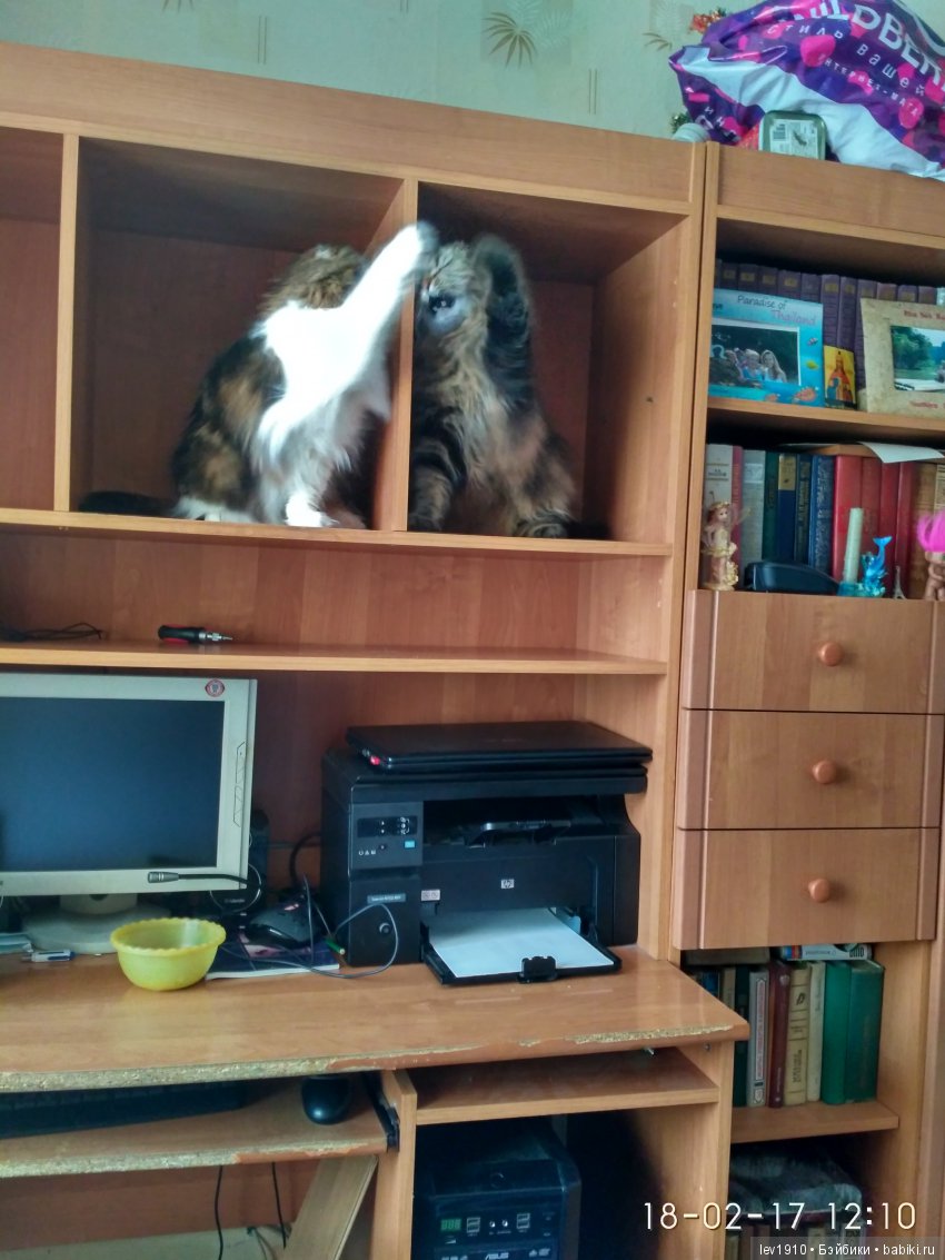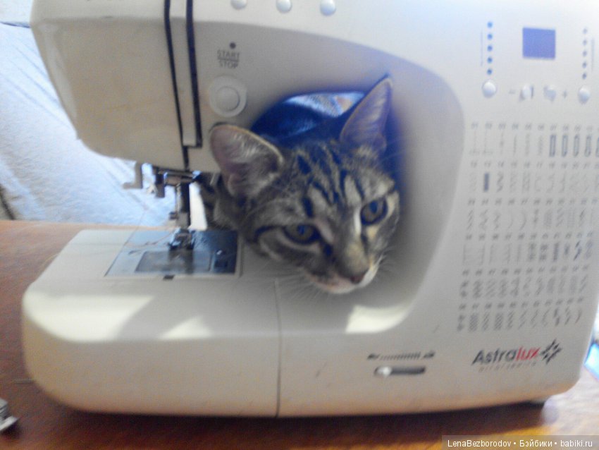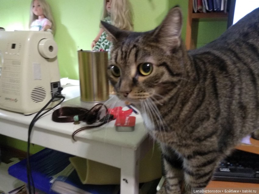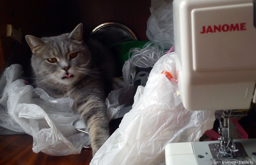 У меня вот такой помощничек, когда надо запаковывать что-нибудь для отправки)) Благо лапы под иголку в машинке больше не сует)