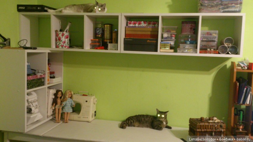 Вот посмотрите ещё раз, другим взглядом, там ведь все котики в тканях, клубочках, бусинках и на технике мастера сидят, лежат, ждут. Ждут, когда хозяйка в 4 ночи наконец пойдёт спать))))