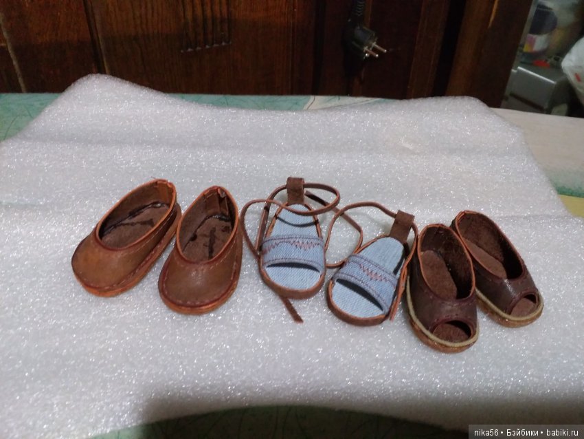 Пробовала вязать обувь, так вся обувочка получается на левую ногу, попробовал а сделать из кожи и джинсы, вроде что-то получилось, но надо конечно совершенствоваться. Кожу, что была в наличии израсходовала, новую пока не приобрела.