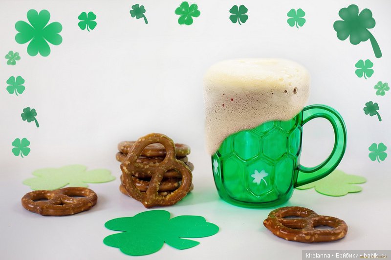 Не удаляясь от кукол, кратенько напомню, вдруг кто забыл: святой Патрик жил давным-давно, ещё до Великой Схизмы, то есть разделения Христианской Церкви на Западную и Восточную, и был тем самым святым, кто принёс Слово Божье в уже не очень дикую в те времена Ирландию. Пытливый ирландский ум никак не мог уразуметь принцип Святой Троицы, и у святого Патрика нашлось гениальное сравнение прямо под ногами — лист клевера, три лопасти которого сидят на едином стебельке и являются одним целым.