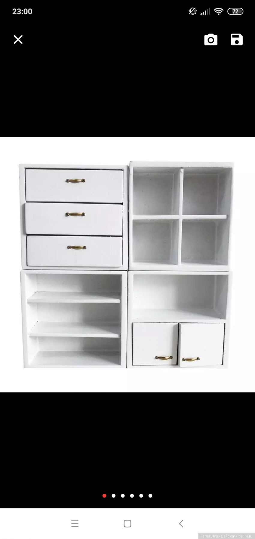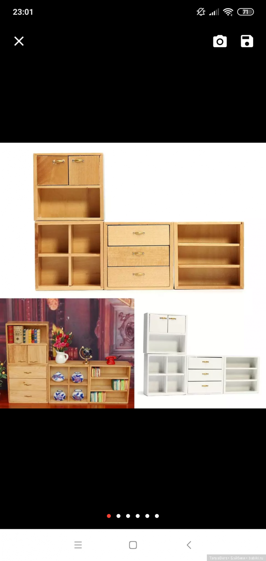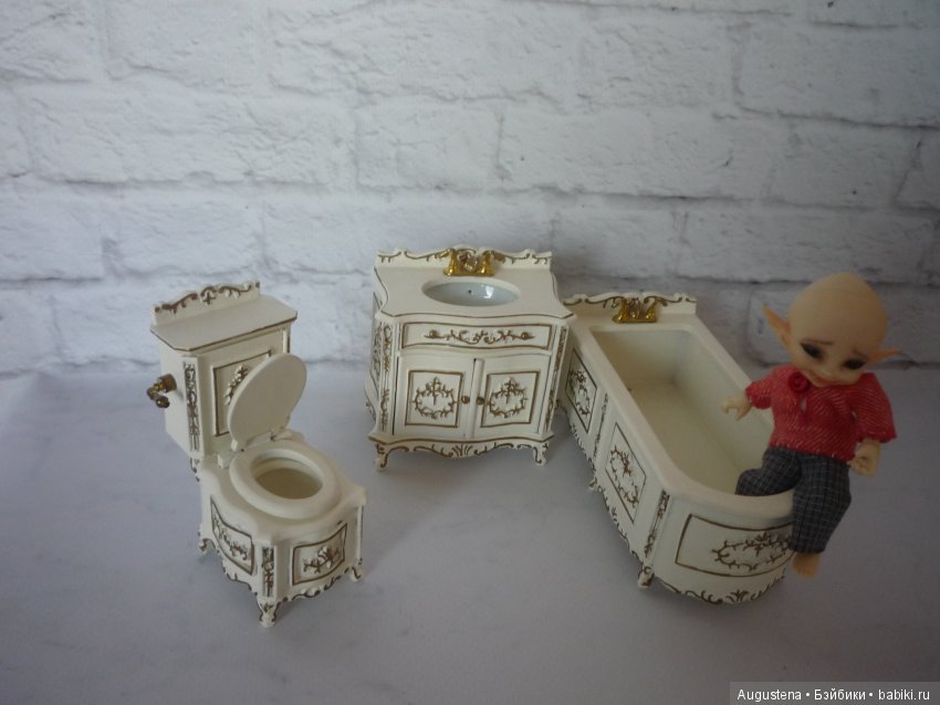 И ещё мебель бывает универсальная, типа комодов и шкафчиков. Для маленьких кукол это будет смотреться большим комодом, и книжным шкафом. А для больших — маленькой тумбой и полуростовым посудным шкафчиком. Но увидеть это всё, мне кажется, только живьём, только ставя всё рядом. А тут мы упираемся в продажу ненужного, не подошедшего…