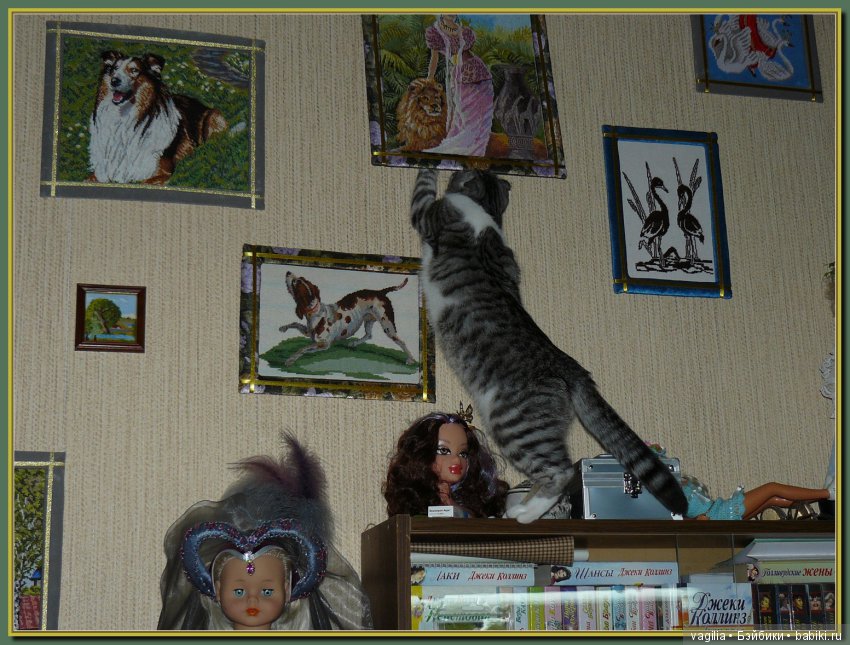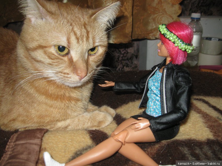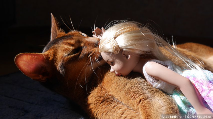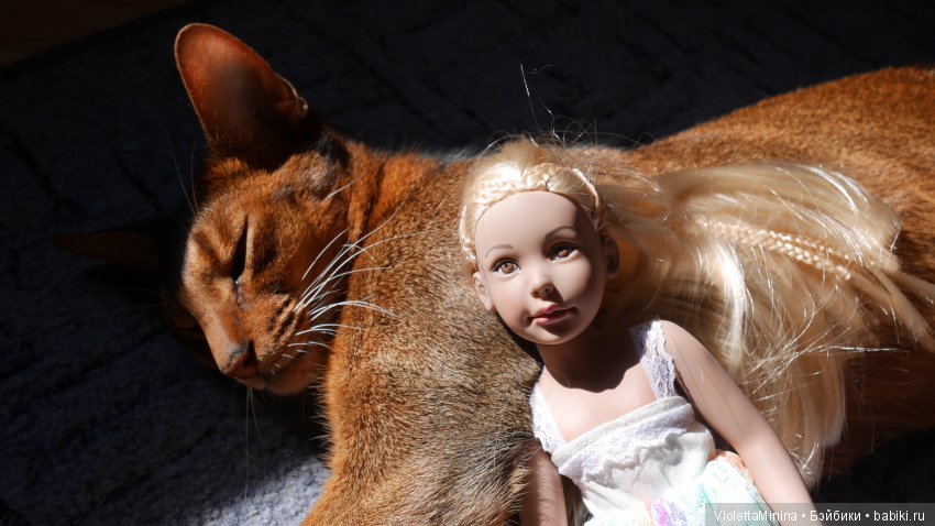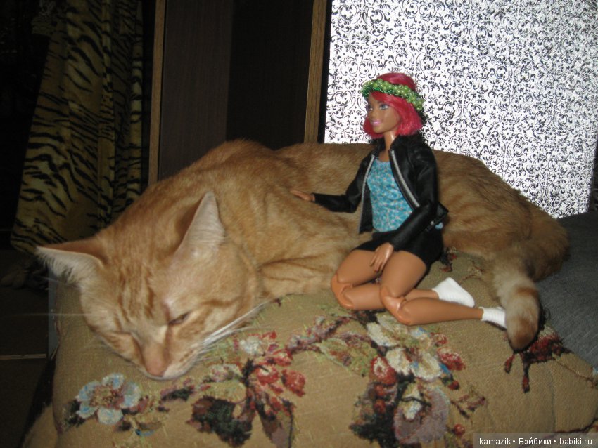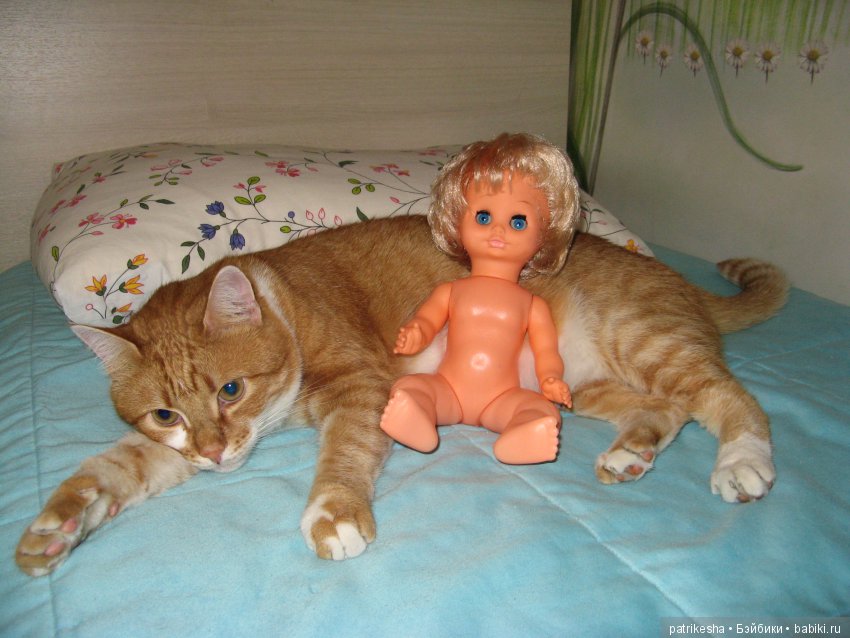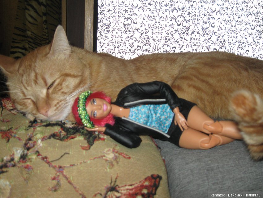 Здравствуйте дорогие Бейбики. Я не знаю, как у вас, но у меня за окном второй день мелкий противный дождь и мой котик совсем не общается со мной, он просто дрыхнет. Моя жалкая попытка его расшевелить ни к чему не привела. Посмотрите сами. Если кот хочет дрыхнуть на моей кровати, то вытерпит всё! Он точно знает, что моё терпение закончится раньше и я его оставлю в покое вместе со своими назойливыми куклами.Но правда пока я его пыталась поднять, проснулась сама и похохотала и наконец то взялась за вязание. Так что польза от этой фото сессии всё таки случилась. Может быть эти фотки ещё кого нибудь разбудят…