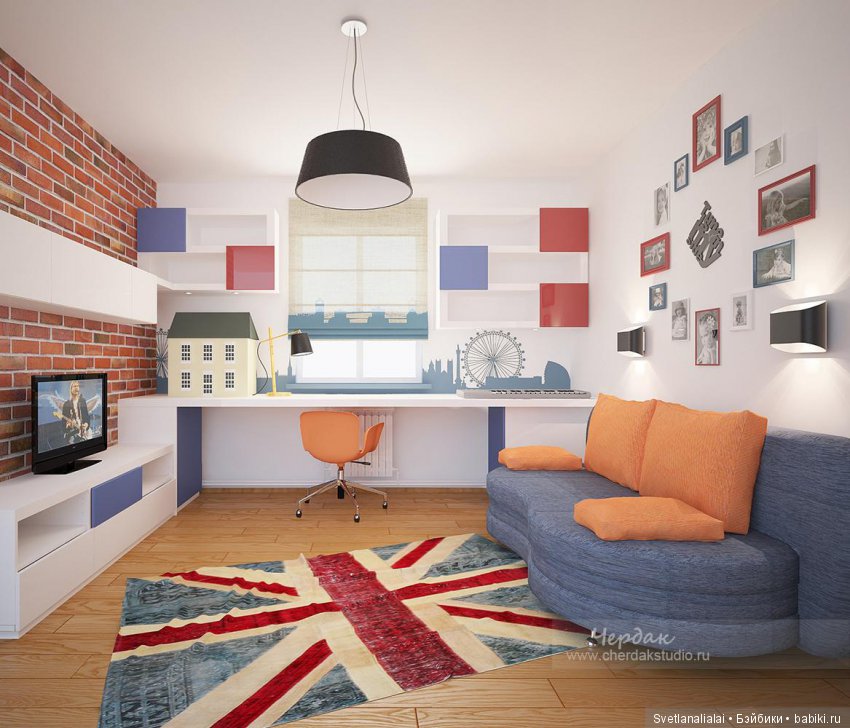 Во-вторых, из-за того, что полка выше, этот псевдопотолок выглядит совершенно неэстетично. В-третьих, для двоих такое расположение мебели, как мне кажется, не очень удобно. И еще цвет стен не очень хорошо получается на фотографиях, а в истории эта комната будет мелькать еще не раз.