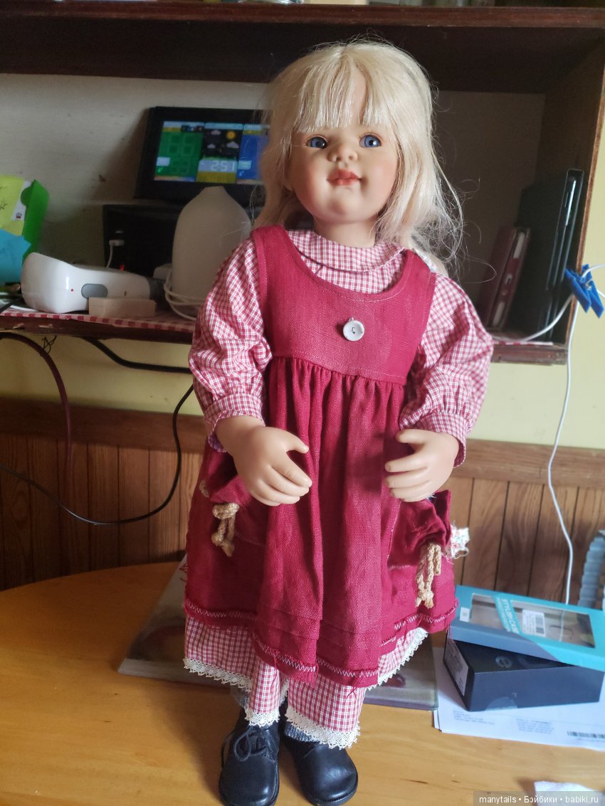 Дальше захотелось себе куколку. Смотрела, читала, искала. Сначала выбор пал на ГДРочек. Вроде бы куклы детства. Парочку купила спонтанно, приглянулись. Но видно что-то из детства накатило, и опять не моё. Купила мягконабивную китаечку. Вот! Моё! Девочку обшила. Личико очень милое, и платье ей идёт, но играть в неё не могу. Только любуюсь. Она такая немного строгая, но трогательная. А дальше меня накрыло «ХОЧУНЕМОГУ»!
