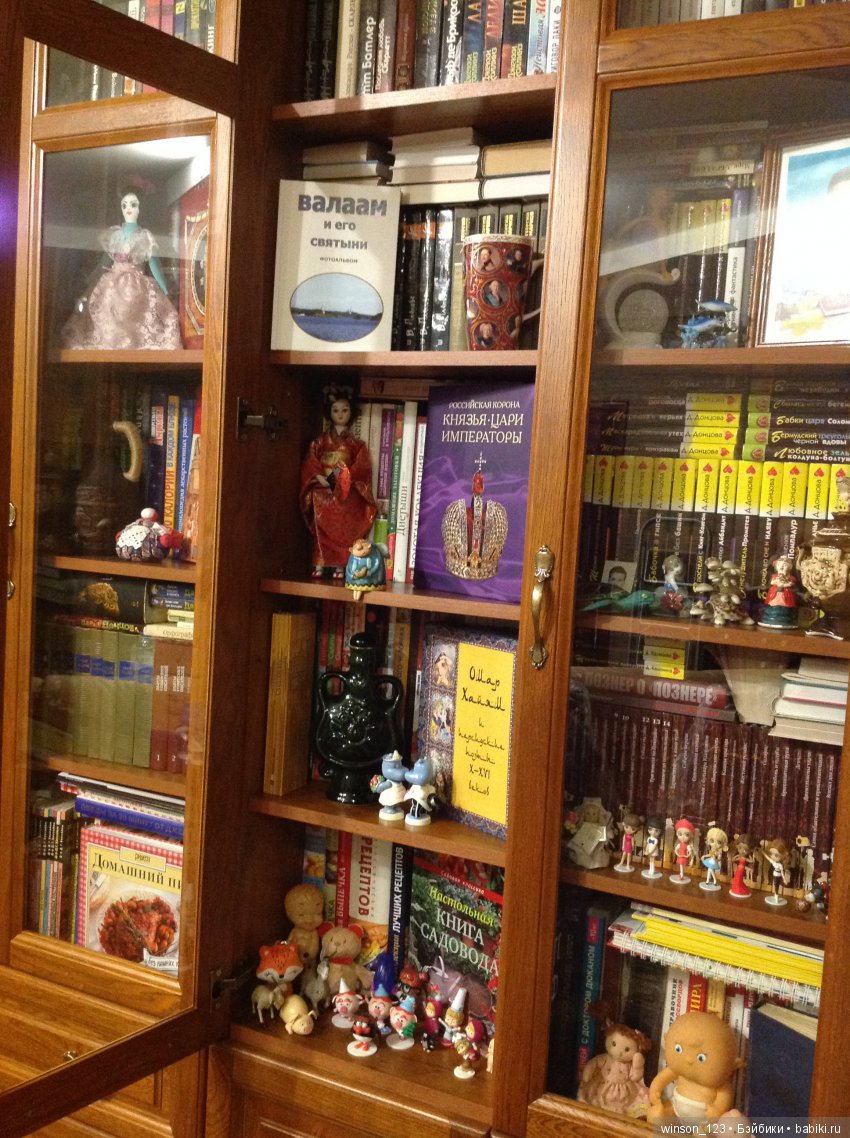 Нет, сейчас речь не о Шкафе Шкафовиче для кукол, а о другом, но ничуть не менее ценном красавце. В связи с 56-ю календарными днями отпуска ваша покорная слуга проводит традиционную уборку в шкафу, в котором хранится небольшая часть нашей библиотеки, а также коллекция разных красивостей, подаренных родными и друзьями или привезённых из разных путешествий. Хотите позырить в чужой сундук с сокровищами? Тогда мы приветственно раскрываем перед вами дверцы!