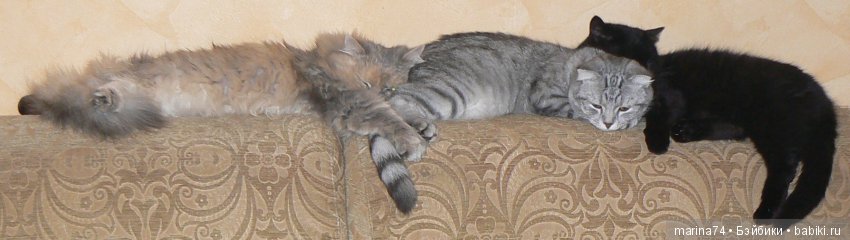 А у меня сейчас дома 3 малыша. У нас на работе разбирали территорию и нашли 5 котят. Один убежал, его не нашли. А 4-х пришлось мне забрать, потому что никто не хотел даже просто помочь. Они были больны. Мать-кошка погибла от собак через 3 дня после того, как нашли котят. 3-х месяц лечили в клинике. От одного сразу отказались, т.к. он был очень слабенький. даже не мог сам есть. Я его сразу забрала домой и выходила. Одного пристроила. А вот 3-е у меня. да еще 2 мои старые кошки.