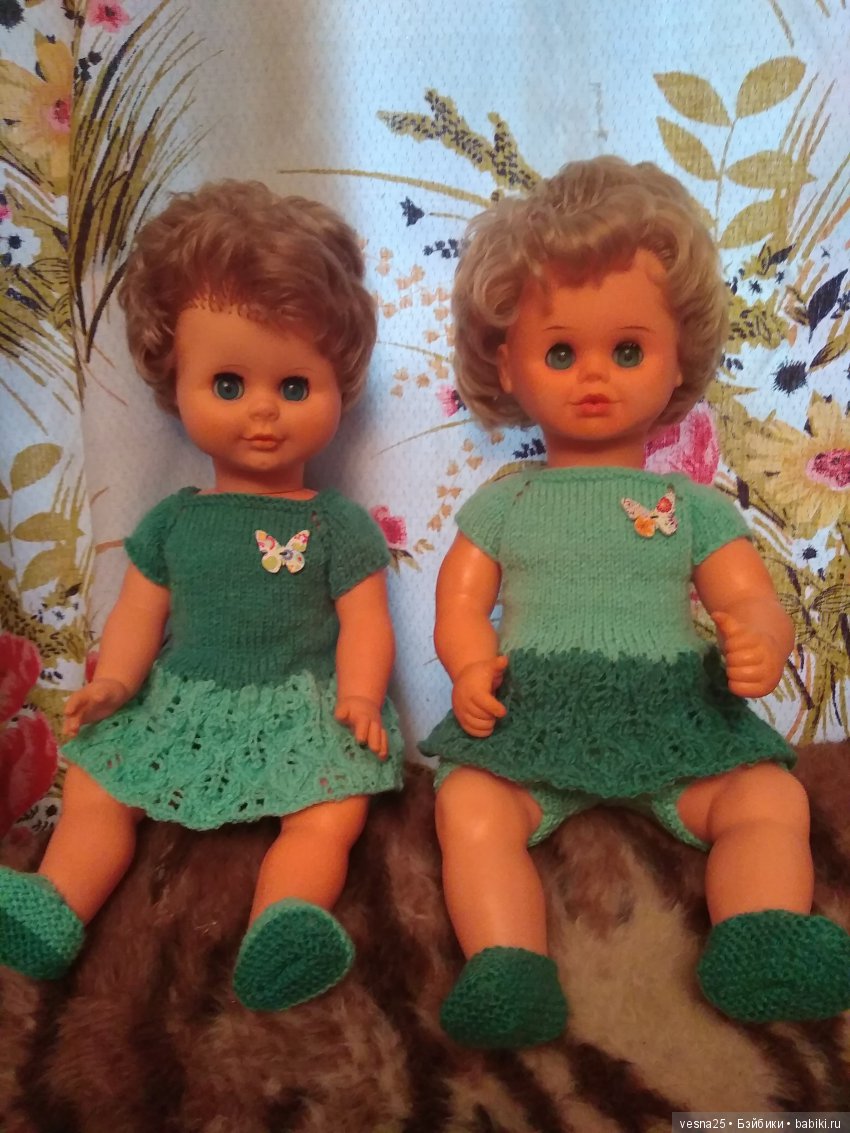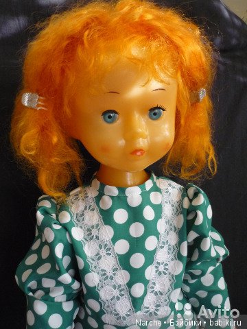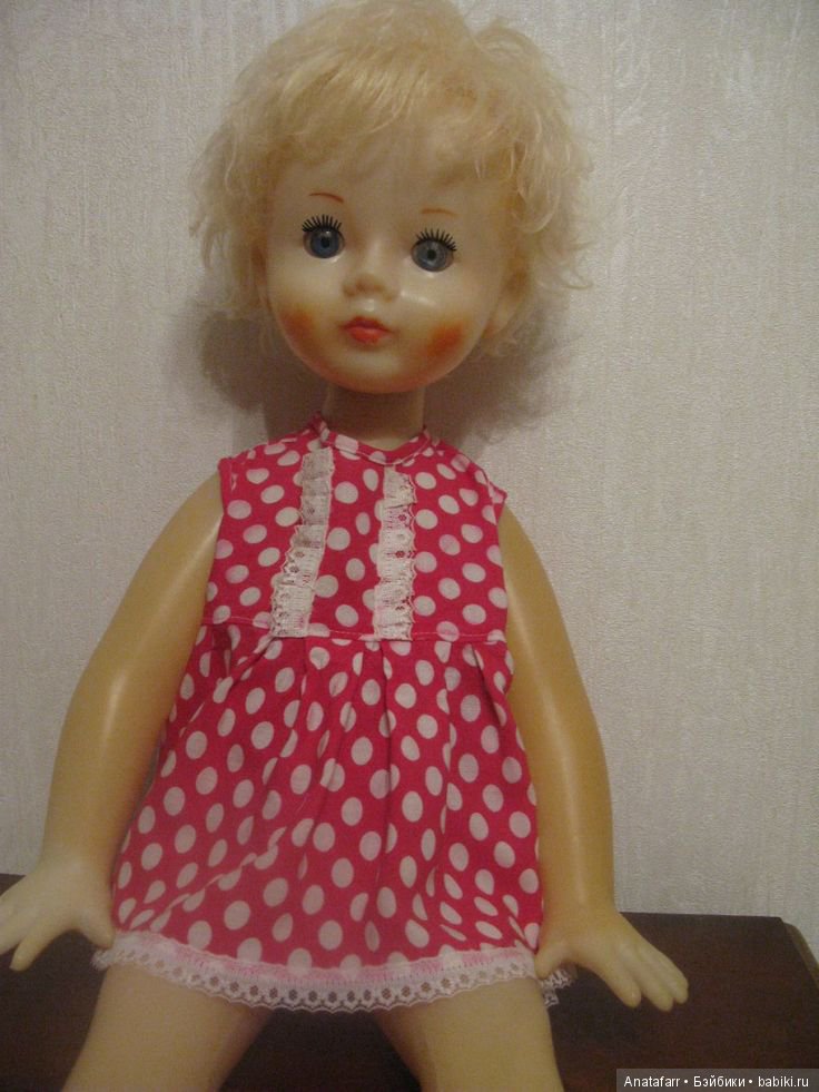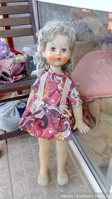 Я, как и вы, пытаюсь вспомнить свою куклу из очень давнего детства… Нина похожа, но у моей были короткие волосы свекольного! цвета (это я очень хорошо помню), похожие растопыренные пальцы, которые меня всегда царапали и еще моя кукла почему- то плохо стояла на ногах (думаю из-за растянутых резинок) и больно стукала меня по голове, т.к. рост у нас был почти одинаковый…