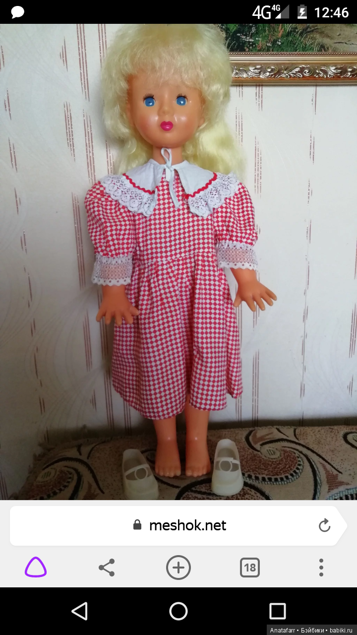 Дала себе слово приобретать только кукол в нормальном состоянии, чтобы и дети мои могли в них поиграть. Жду прибытия четырёх разных куколок, одна даже в родном (впрочем, Маша-Нина тоже приехала в родной одежде-обуви) сарафане и кокошнике. А потом я увидела её — полулысую