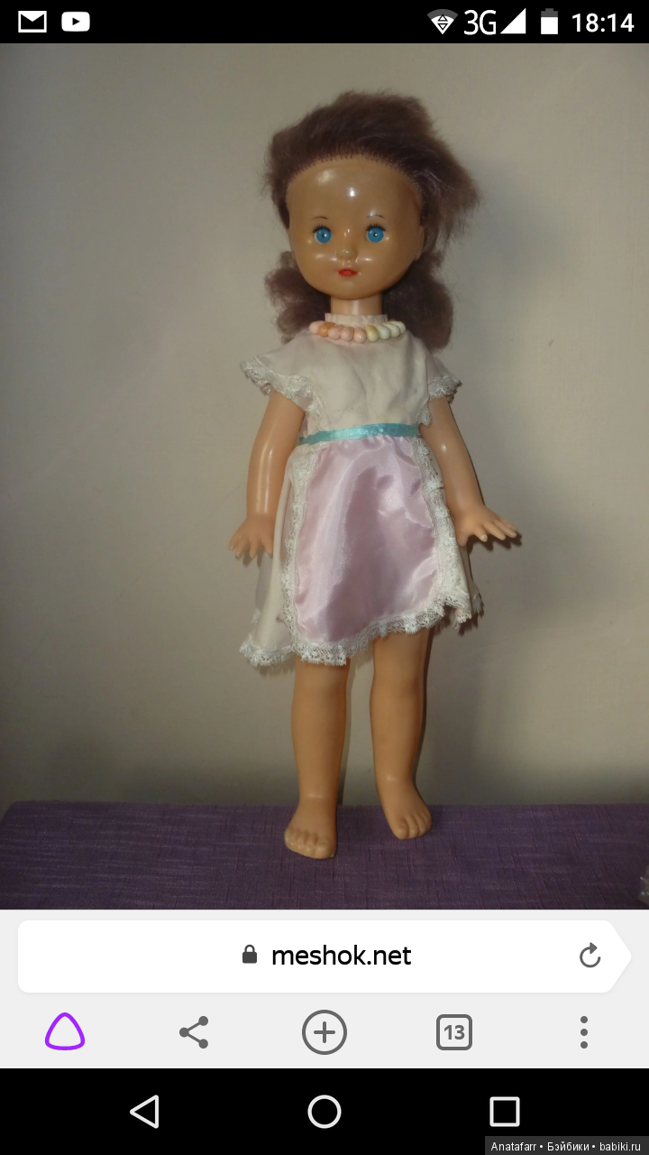 Дала себе слово приобретать только кукол в нормальном состоянии, чтобы и дети мои могли в них поиграть. Жду прибытия четырёх разных куколок, одна даже в родном (впрочем, Маша-Нина тоже приехала в родной одежде-обуви) сарафане и кокошнике. А потом я увидела её — полулысуюнесчастную, брошенную Нину, и поняла: я хочу только её. Возможно, это игра света, но на фото цвет её глаз просто удивительный. На данный момент Нина выставлена на аукционе на Мешке, и я жду, когда же он закончится, чтобы поскорей встретиться с ней.