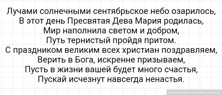 С Праздником! С Рождеством Пресвятой Богородицы! Всем добра, мира, любви, здоровья, всего самого доброго и светлого!