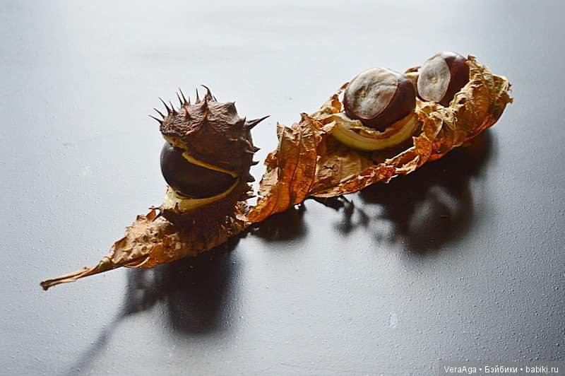 Дома каштанов просто прорва. И везде, где появляюсь осенью у друзей-знакомых, оставляю каштанчики. Народ ужасно возмущается, потому что у них тоже рука не поднимается их выбрасывать, и каштаны с моей лёгкой руки начинают накапливаться)))