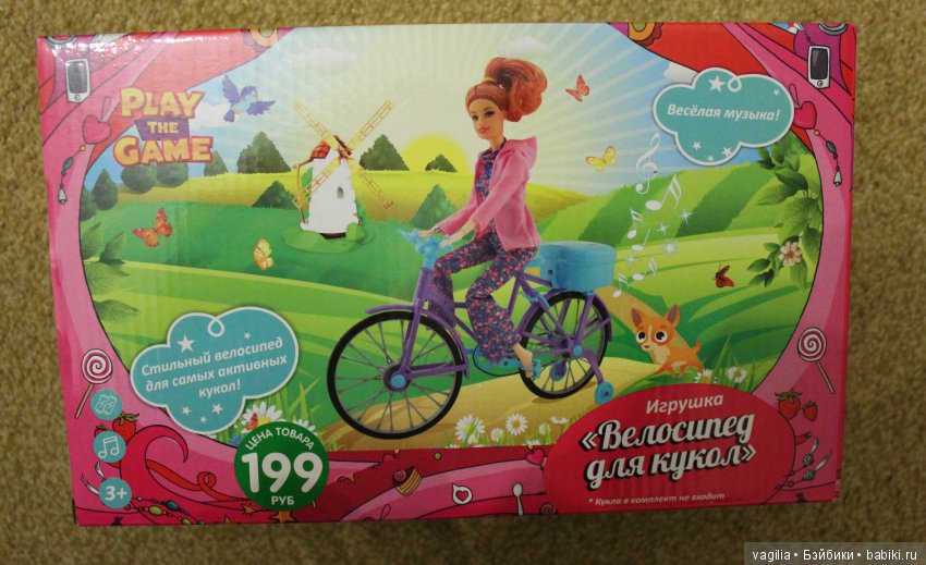 Здравствуйте девочки. Давно хотела купить велосипеды для фото сессий с куклами, но они достаточно дорогие, чтобы ради фото на них решиться. Но вдруг я открываю топик Галины и вижу шикарный велик с Фикс прайса. Полетела на следующий день даже не надеясь в нашем магазине их увидеть. и вот полка с игрушками, а на ней несколько коробок, ура! Схватила четыре, себе два и подружкам два. Ой девочки… как я играла! Вставила батарейки и понеслось. Велики ездят очень хорошо, моторчики урчат, музыка играет, душа поёт. Столько вспомнилось всего… Ведь в мою молодость у мальчиков машин не было и нас возили и на багажниках и на рамах мальчишки, разгонялись, как можно быстрее, мы визжали, как резанные и все были абсолютно счастливы. Ездили за цветами и на речку и просто гоняли по дорогам, ведь тогда машин было на них очень мало. И почти у каждого мальчика транзисторный приемник, а от туда музыка, да погромче! Так что сегодня я счастлива и довольна, а куклёхи мои осваивали велики и тоже практически визжали, даже Урфин рискнул прокатить свою девочку. Спасибо тебе Галочка за чудесный вечер! И велики во всей красе!
