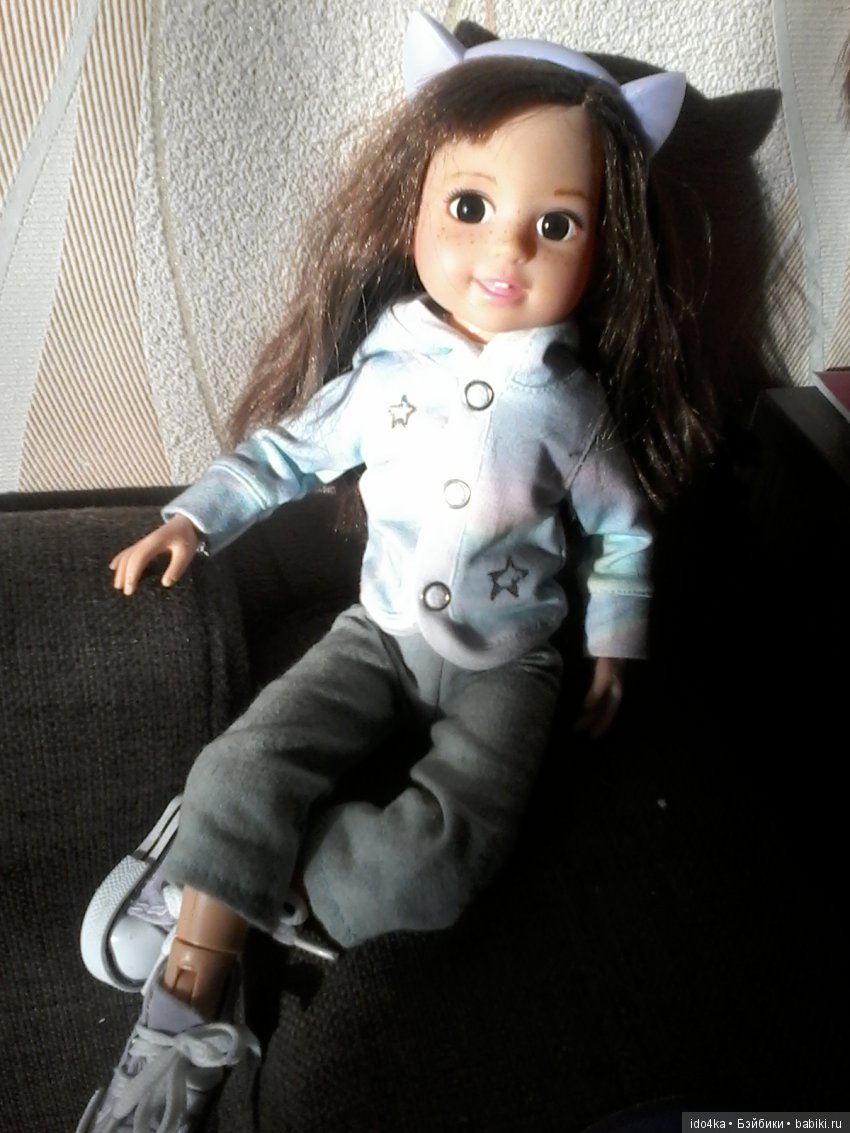 Таскаю только по дому (на работу особо не возьмешь барышню ростом 40 см, да и ПУ — это вам не маттелевский пластик, который выдержит огонь, воду и медные трубы), и нещадно тискаю, глажу по головке и т.п. (картинка маслом еще та — взрослая тетка 34 годиков резвиться с любимой куклой). Но она действительно самая-самая в моей коллекции. Особенная. Мы уже почти год вместе, и «съели» вдвоем с ней не один пуд соли, пересмотрели кучку фильмов и сериалов)))