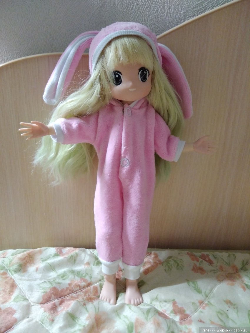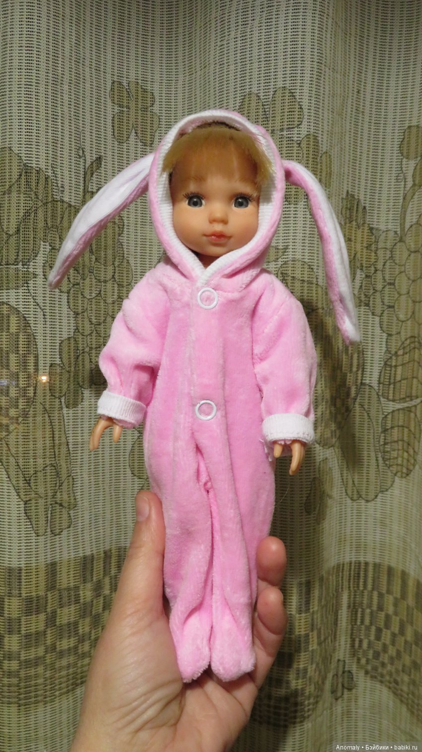 Одежда на пупса ростиком примерно 23 см. На моей Танюшке розовый комбез был длинноват в ножках, топик babiki.ru/blog/boltalka/163612.html