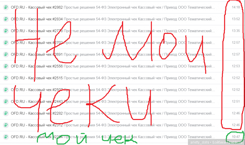 Кто-то ещё получает не свои чеки? В службе поддержки ofd.ru сказали ничем помочь не могут. Меня это беспокоит, т.к. это суммарно не маленькие суммы. Проверять ежеминутно списалили деньги или нет, да и вся ситуация напрягает :-(