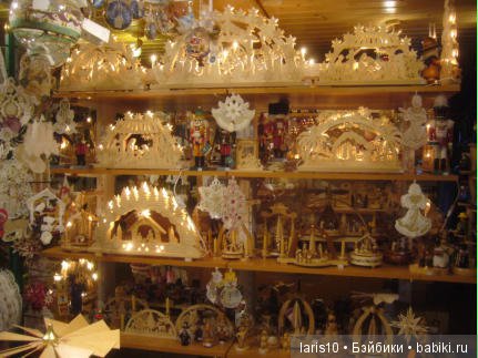 Вот на рождественском базаре представлены традиционные фигурки и украшения из Зайффена, местечка в Рудных горах, где их производят.