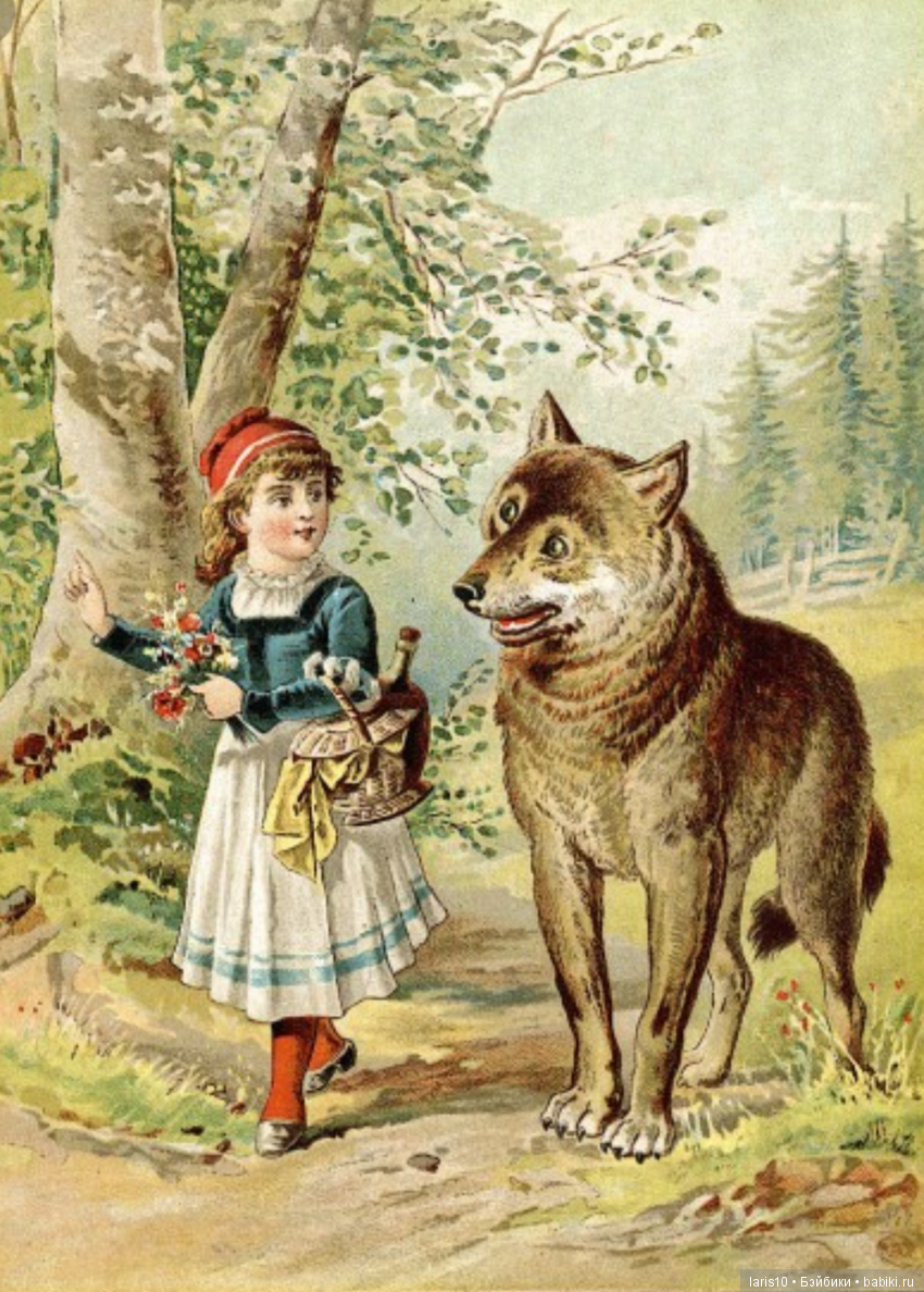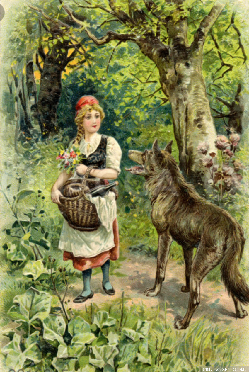 И Волк судя по иллюстрации как раз на нее и облизывается, а совсем и не на красную Шапочку!