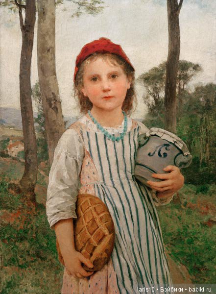 Во французкой версии Шарля Перро она несет бабушке испеченый хлеб и горшочек масла.