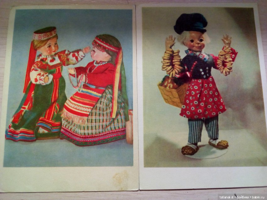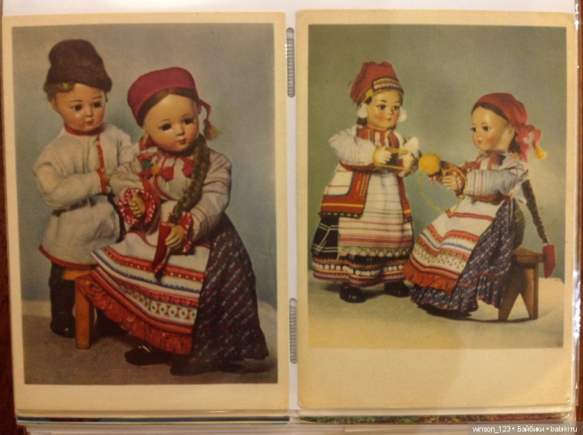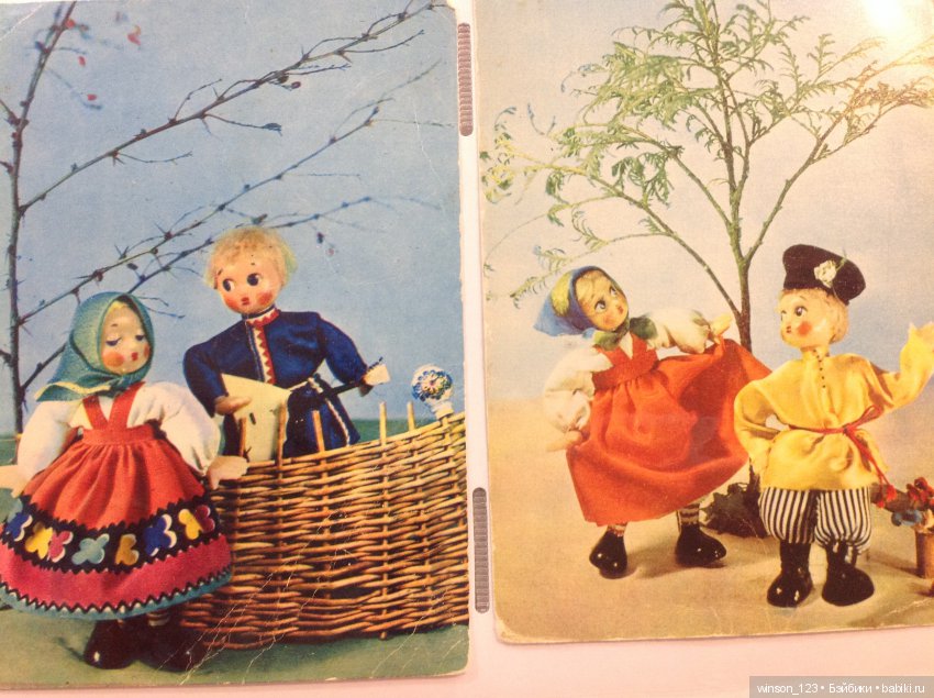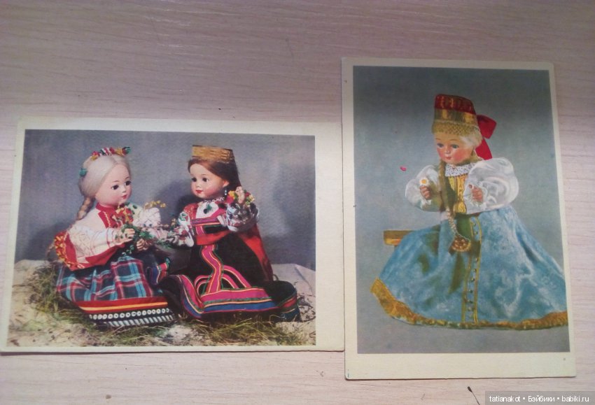 И раз такое дело — добавлю фото 16 открыток из серии «Куклы в национальных костюмах». Правда, из этой серии у меня есть открытка с литовскими куклами, причем, две одинаковые!