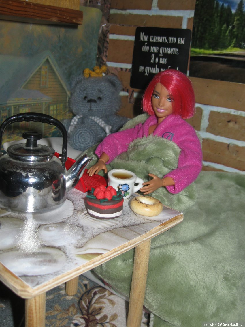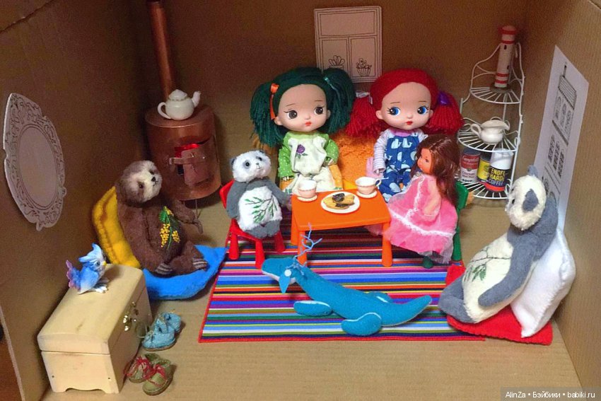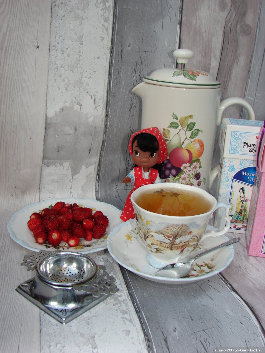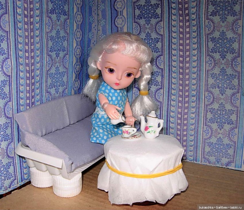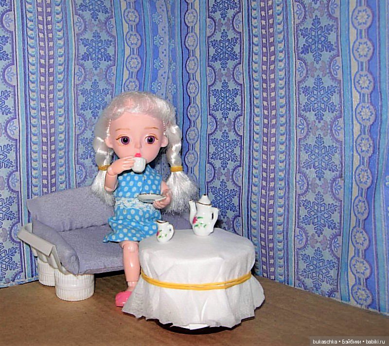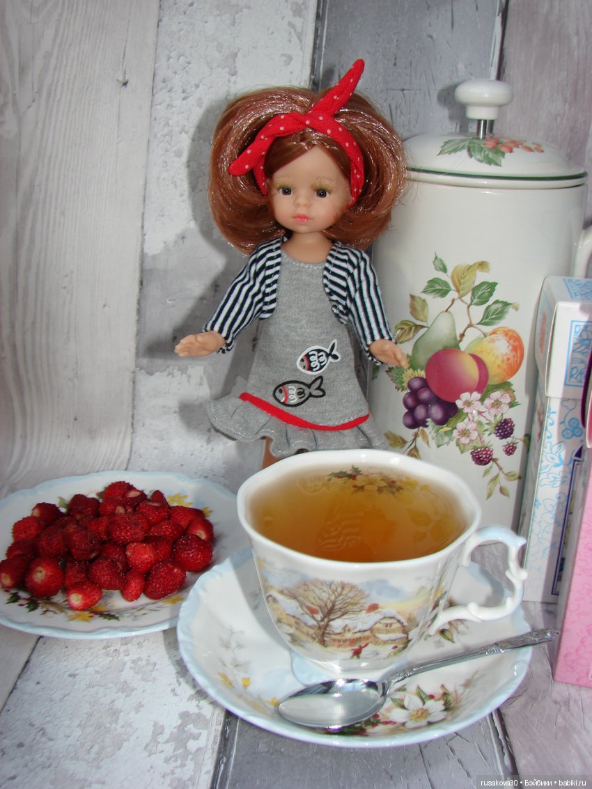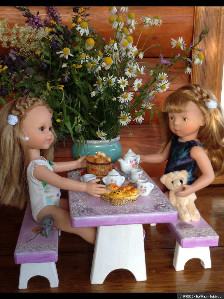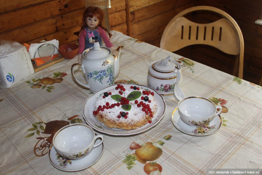 И куклы мои примерно так же. Как ни усажу, всегда стараюсь дополнить «посиделки» чашечками и чем-нибудь вкусным!