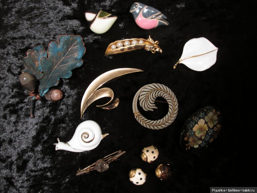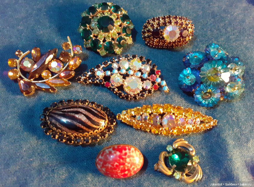 Здесь винтажная Европа и винтажная Америка, одна современная брошка и брошь, как у Фаины Раневской.