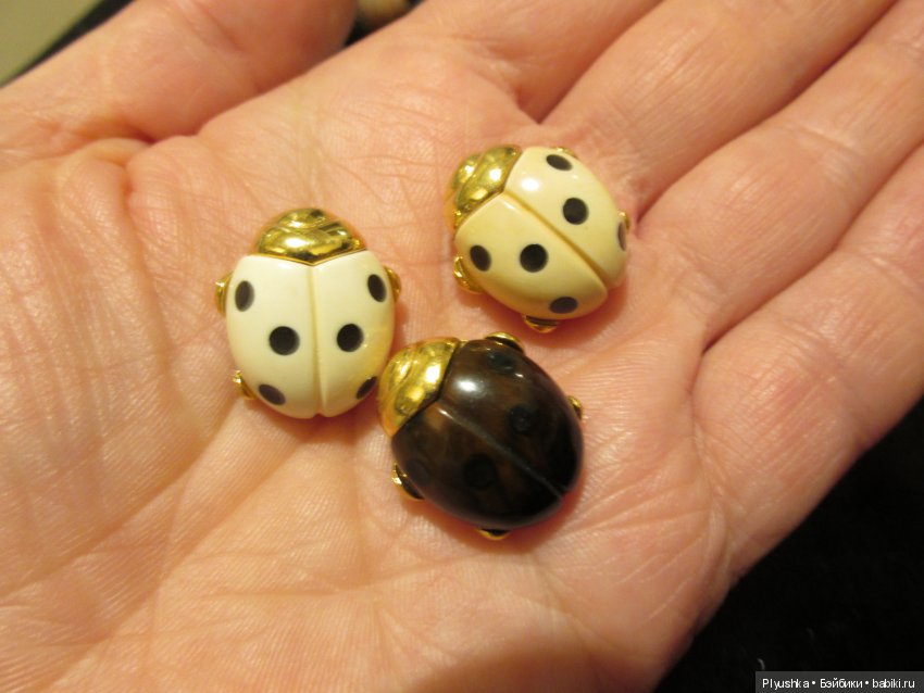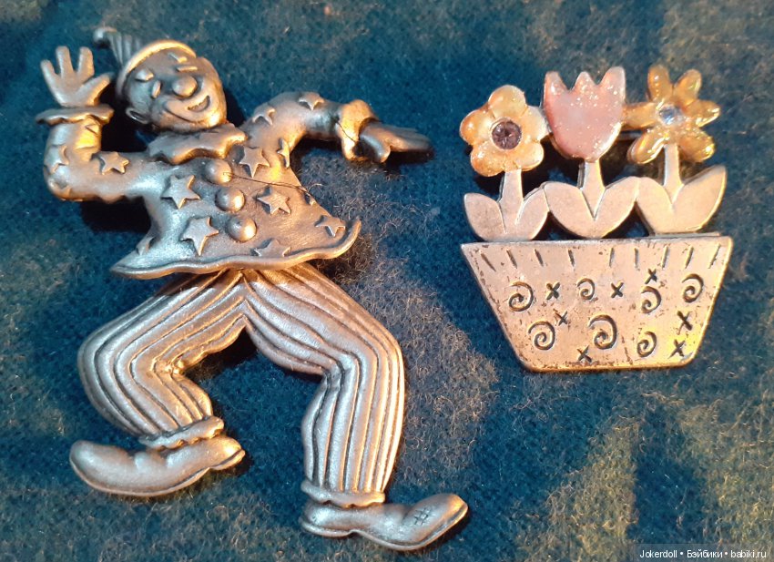 У меня нет брошек. Помню, что у мамы были две, которые мне очень нравились- вроде гном со стразиками( если не ошибаюсь) и паук с имитацией янтаря. А ещё мне почему-то захотелось найти себе советские броши-ягодки, которые были у моей тёти пластмассовые веточка красной смородины, две вишенки с листиками и ещё какая-то. Мне они ужасно нравились и когда я приходила к ней в гости, то всё время рассматривала их. Сколько искала в интернете и на блошке, похожих не нашла.