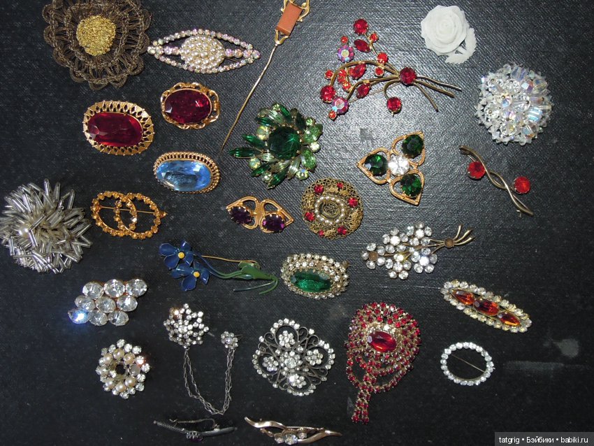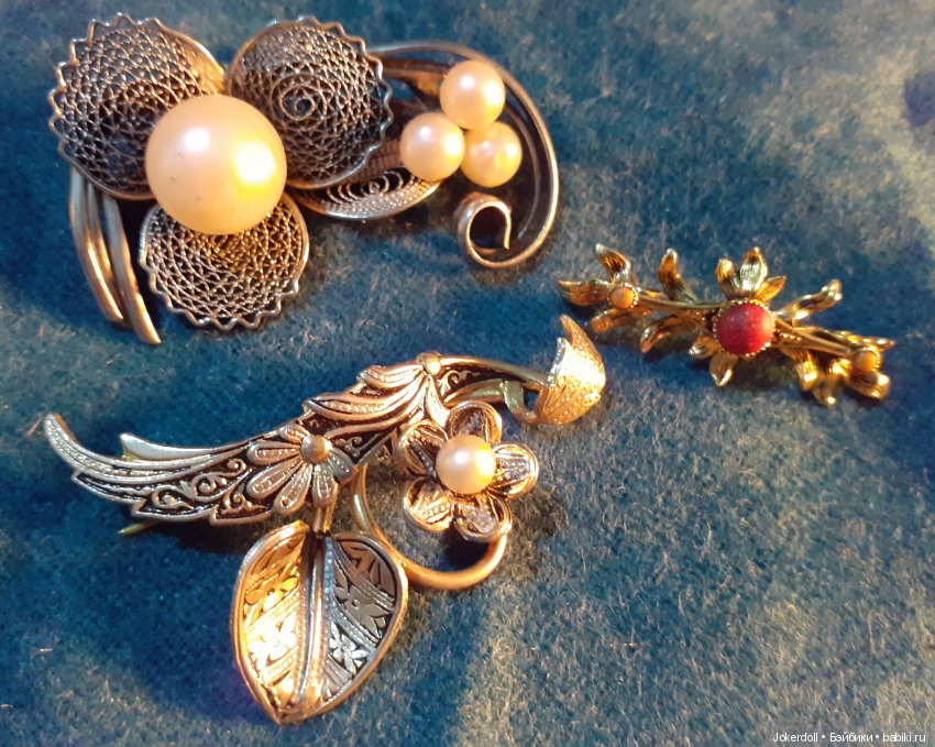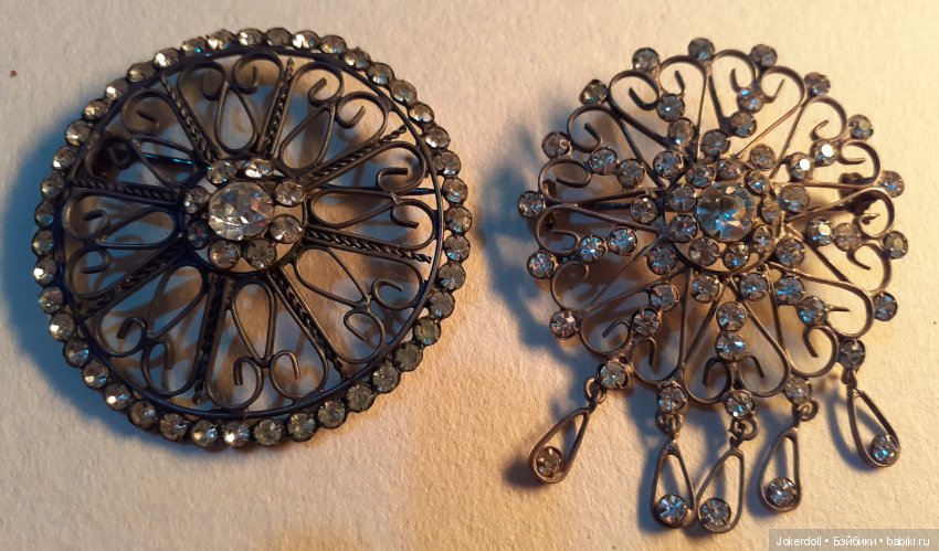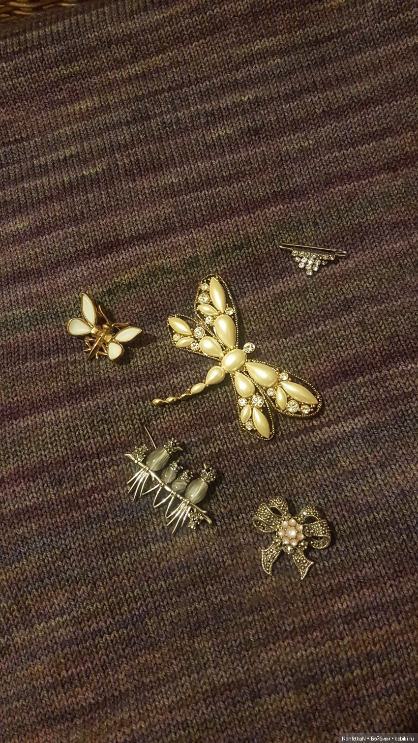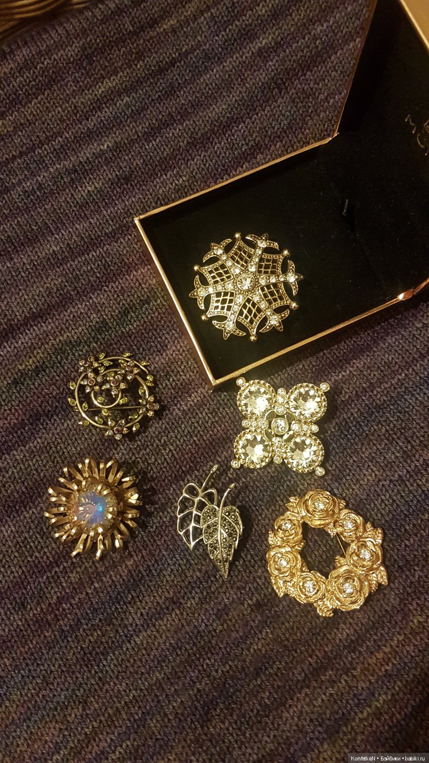 2 броши достались по наследству: винтаж СССР с перламутром, и антик с горным хрусталём. Их я берегу, ни разу не надевала. И, наверное, зря. Надо исправляться)