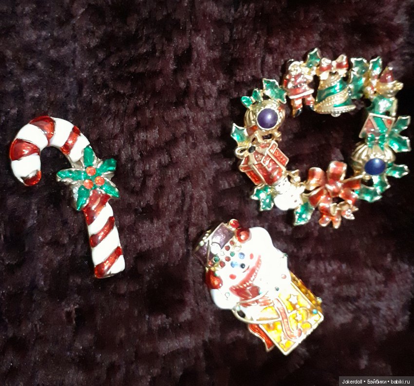 Верхняя одежда (антикварная уже плюшевая шубка 1925 года) будет украшена этим набром американских праздничных брошей: