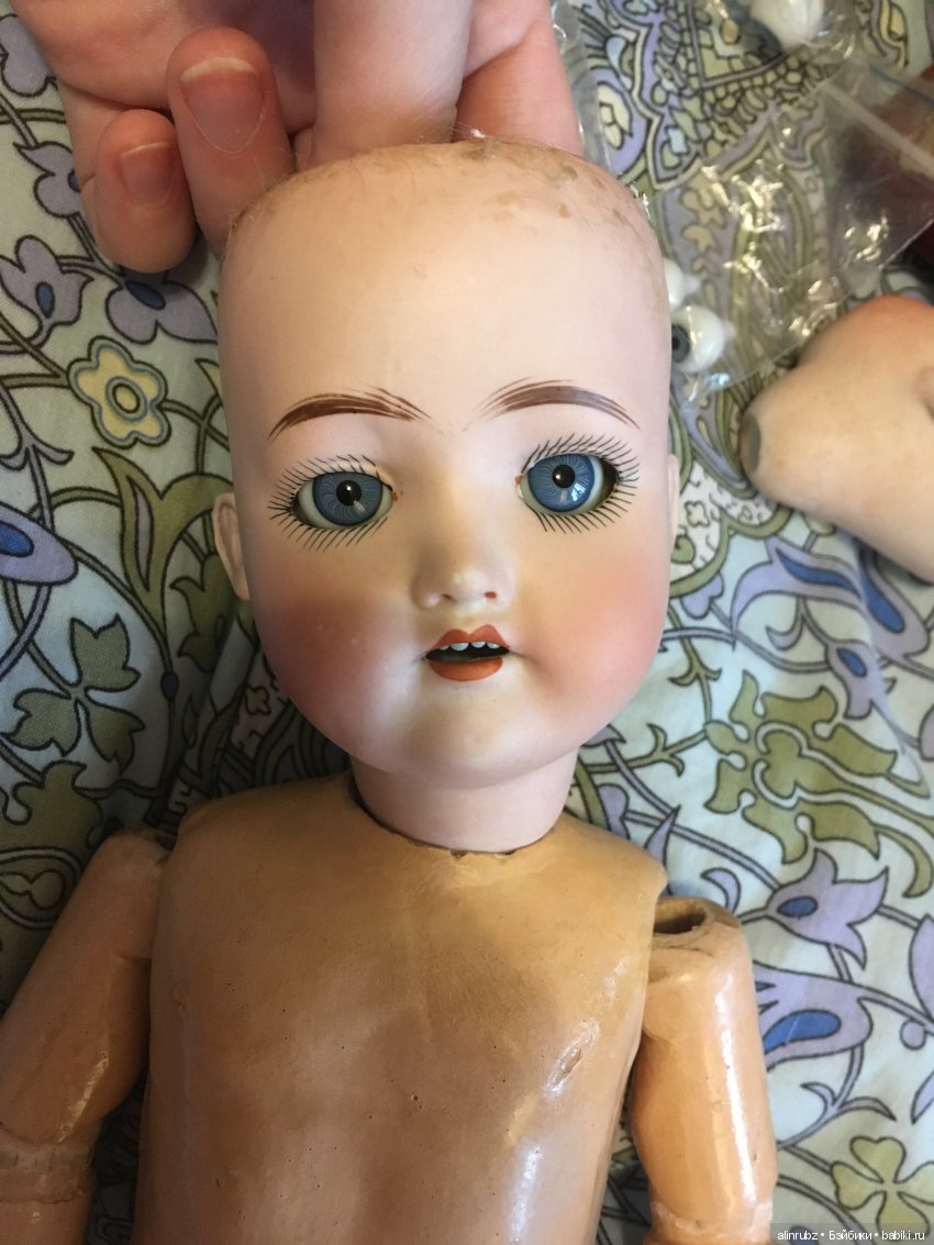 Предыстория такова. Мечтала я мечталку о антикварной куколке. Но не могу пока позволить себе что-то дорогое. Поэтому было принято решение купить отдельно тело и голову. Спасибо добрым людям, которые дают рассрочку))) Увидела тельце — влюбилась. Хотелось махонькое такое, не более 35 см. И чтобы кисти рук подвижные и лепка изящная)